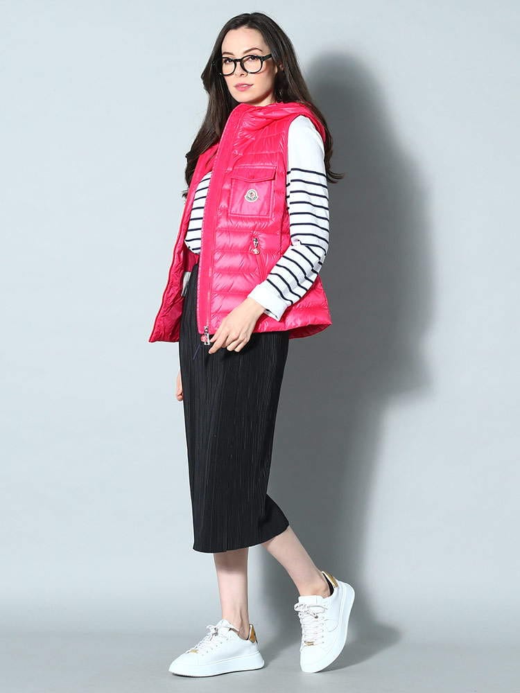 Glygosダウンジレは、ニットやスウェットシャツ、軽いジャケットの上に重ねて着ることができる、季節の変わり目の必需品です。ロングセゾン素材を使用し、定番のMonclerパッチポケットを胸元にあしらったフード付きのジレです。