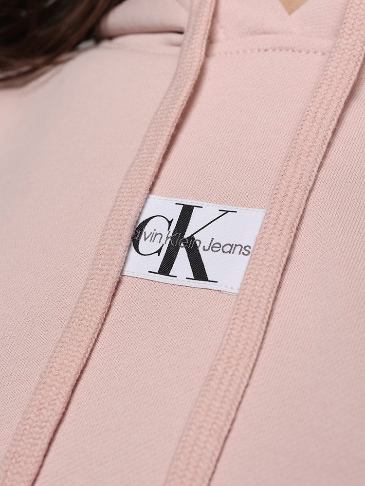 シンプルなCKロゴタグを胸に配したショートパーカー。裾はリブで絞らず、ボクシーなシルエットをキープ。トレンドのボリュームボトムスと相性がよく、90'sリバイバルやY2Kファッションにぴったりです。