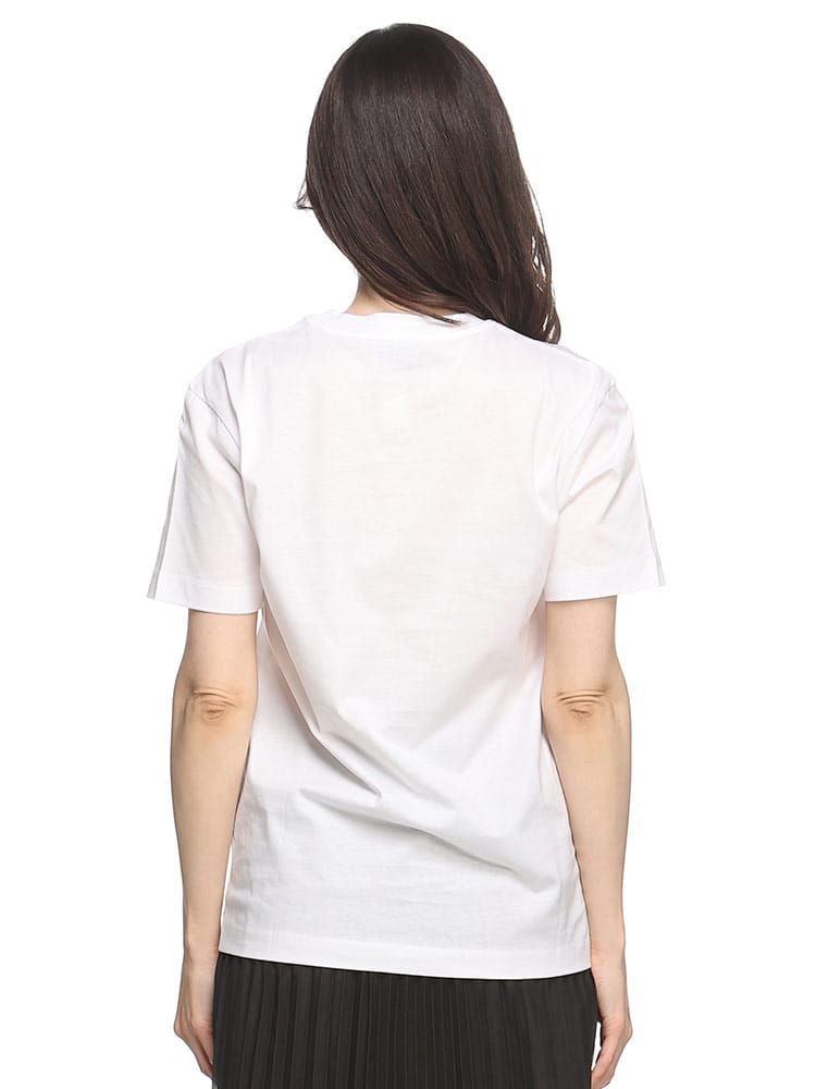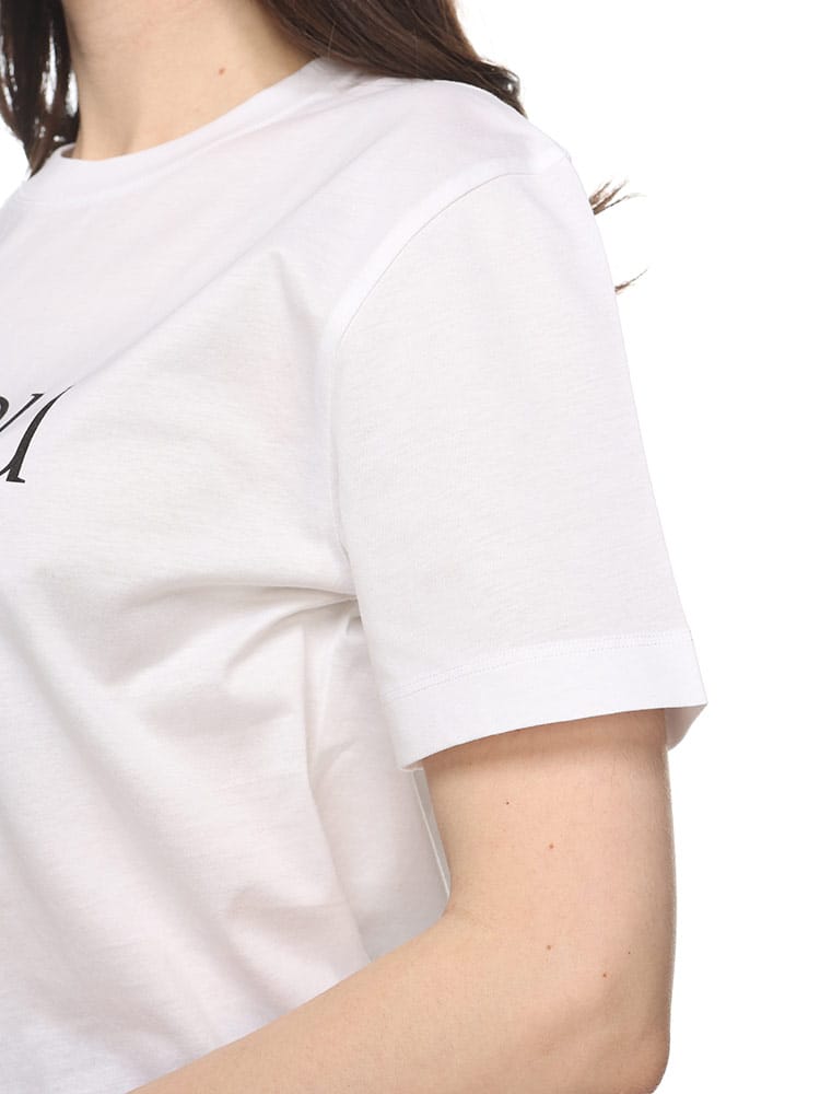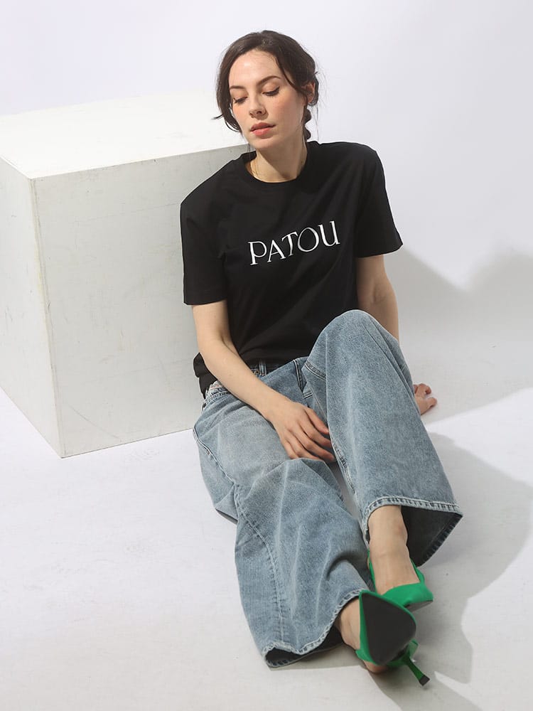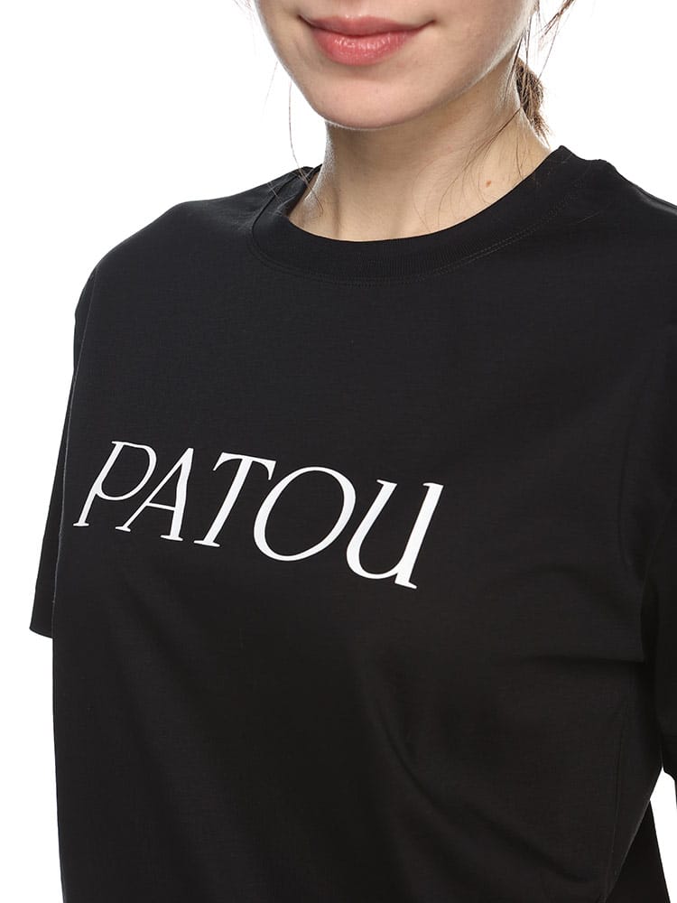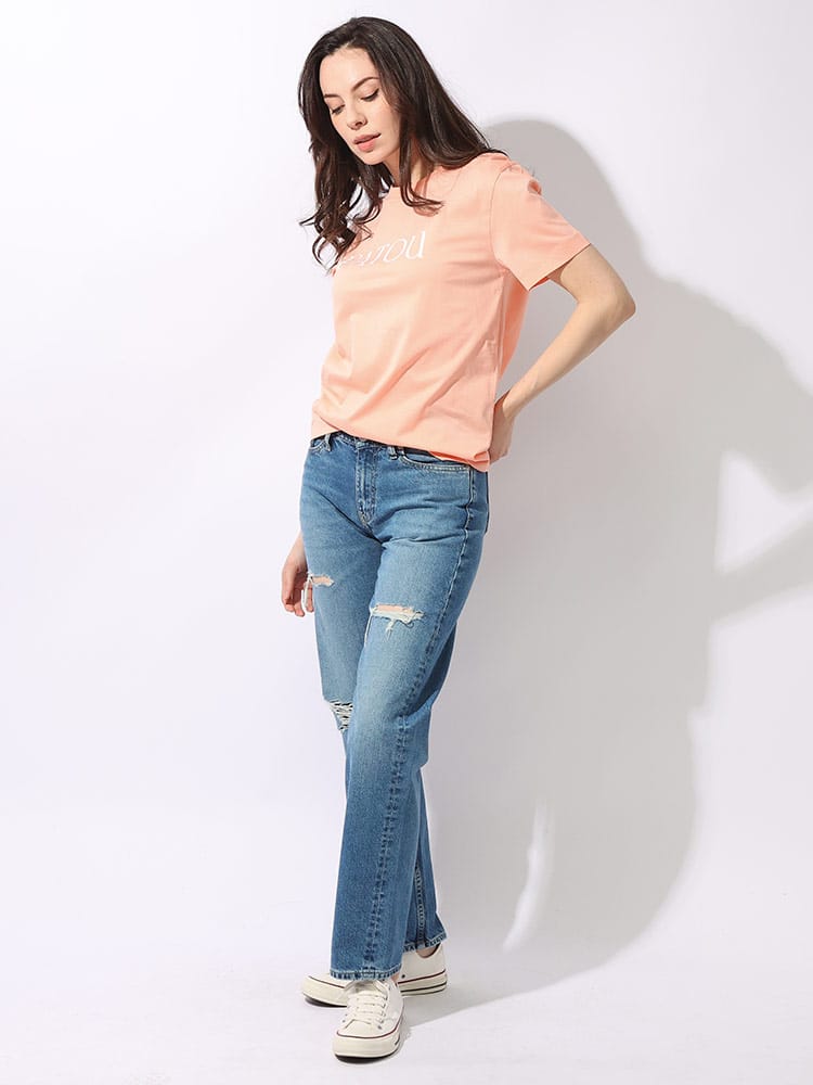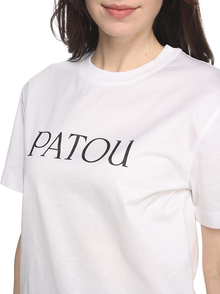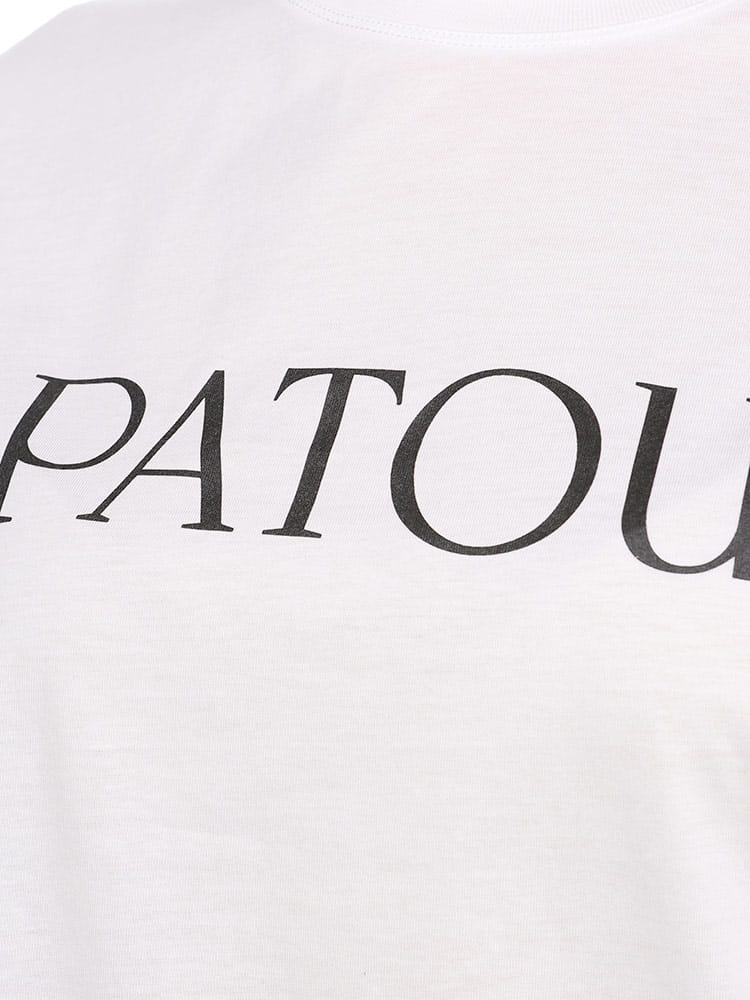 アプリコットオレンジのオーガニックコットンTシャツ。クルーネック、レギュラーフィット。フロント全体にパトゥロゴ。