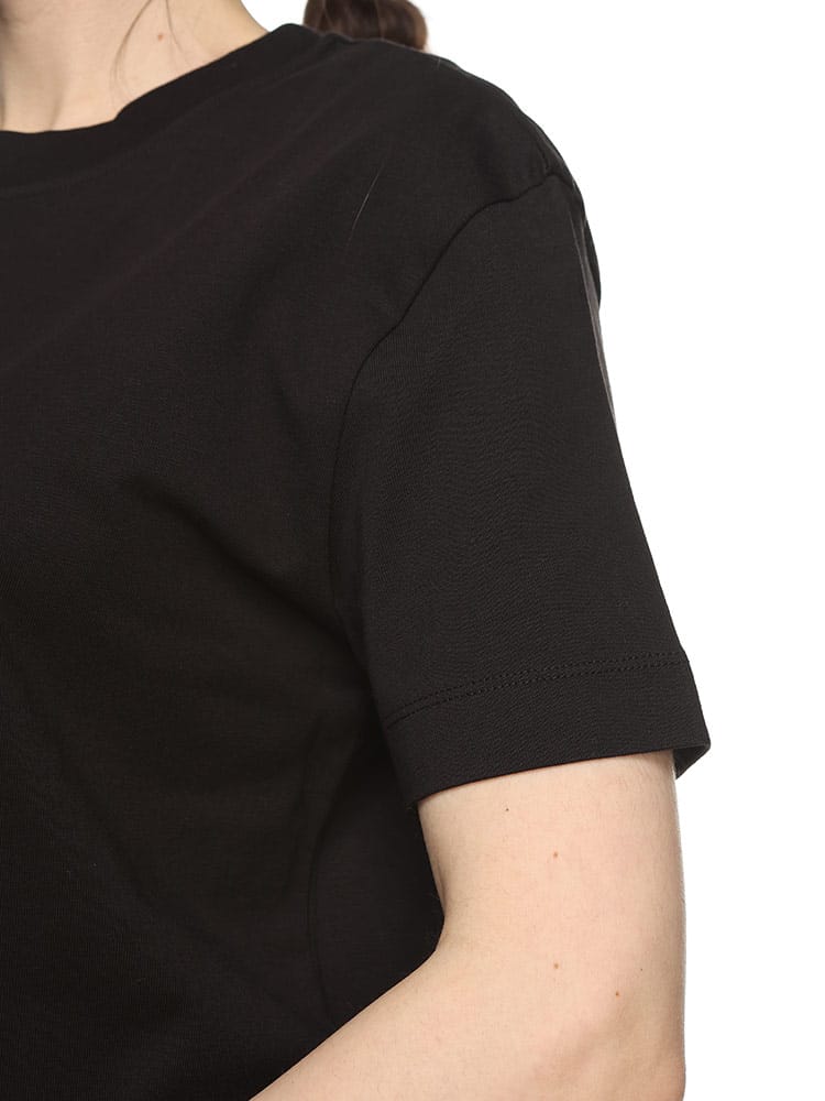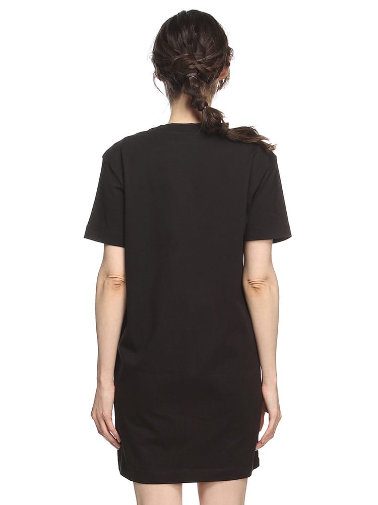 スリムフィットシルエットがスタイルを魅力的に描き出すTシャツワンピース。コンパクトなキャップスリーブで肩周りを華奢に見せています。ヘルシーな美脚を演出するミニ丈もポイント。胸の中央にはブランドアイコンのプリントをあしらいました。