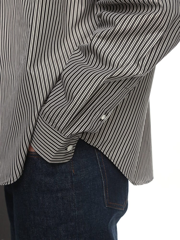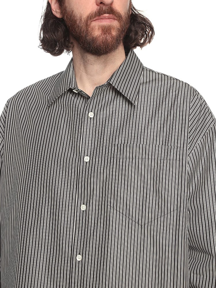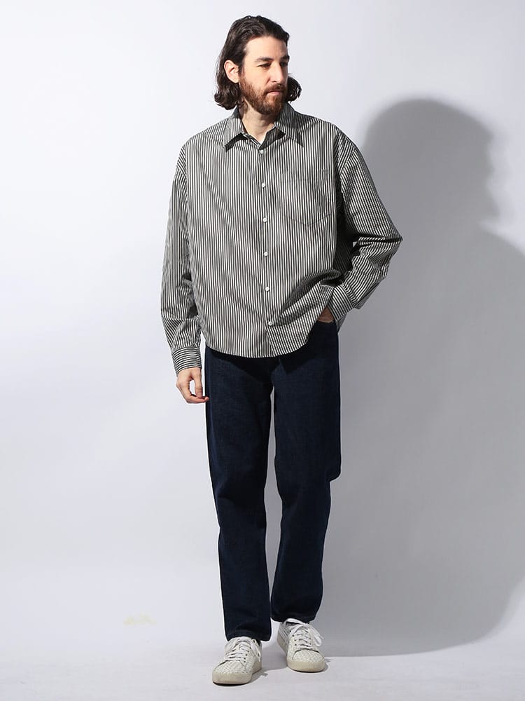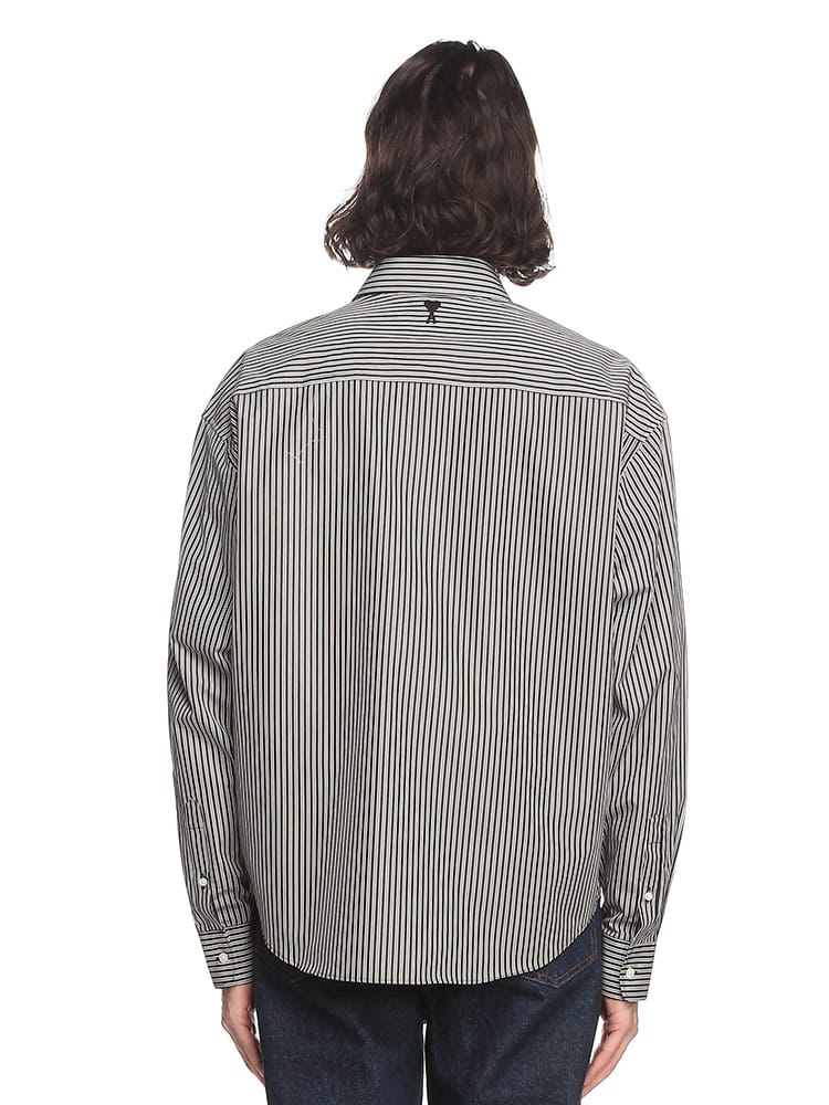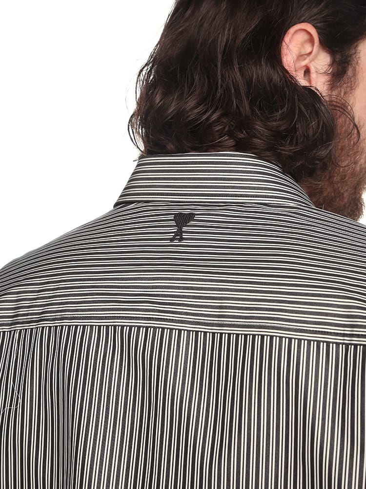 AMIのストライプ柄長袖カジュアルシャツは、快適な着心地を提供するコットン100%素材を使用。洗練されたデザインの一部として、首元の後ろにはAMIの象徴的なロゴが刺繍されており、ブランドの細部に対するこだわりを表現しています。シンプルながらも洗練されたこのシャツは、カジュアルながらも上品なスタイルを演出します。