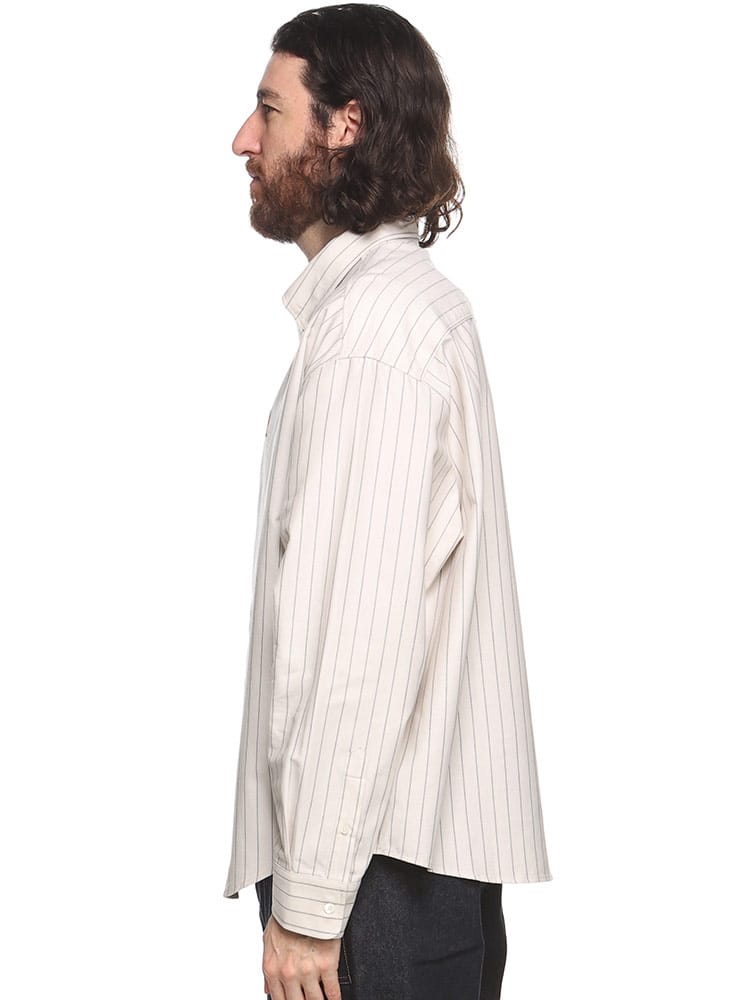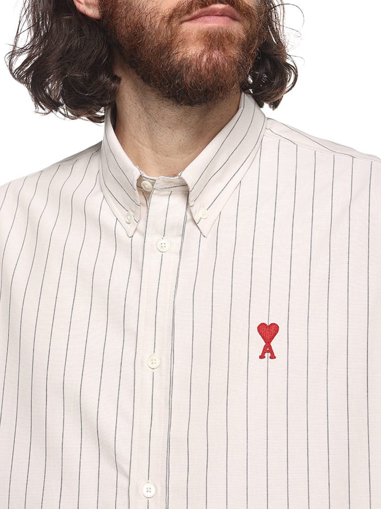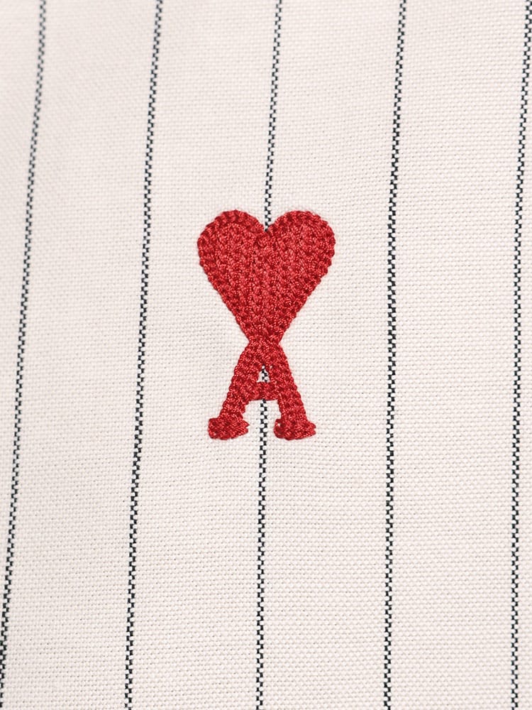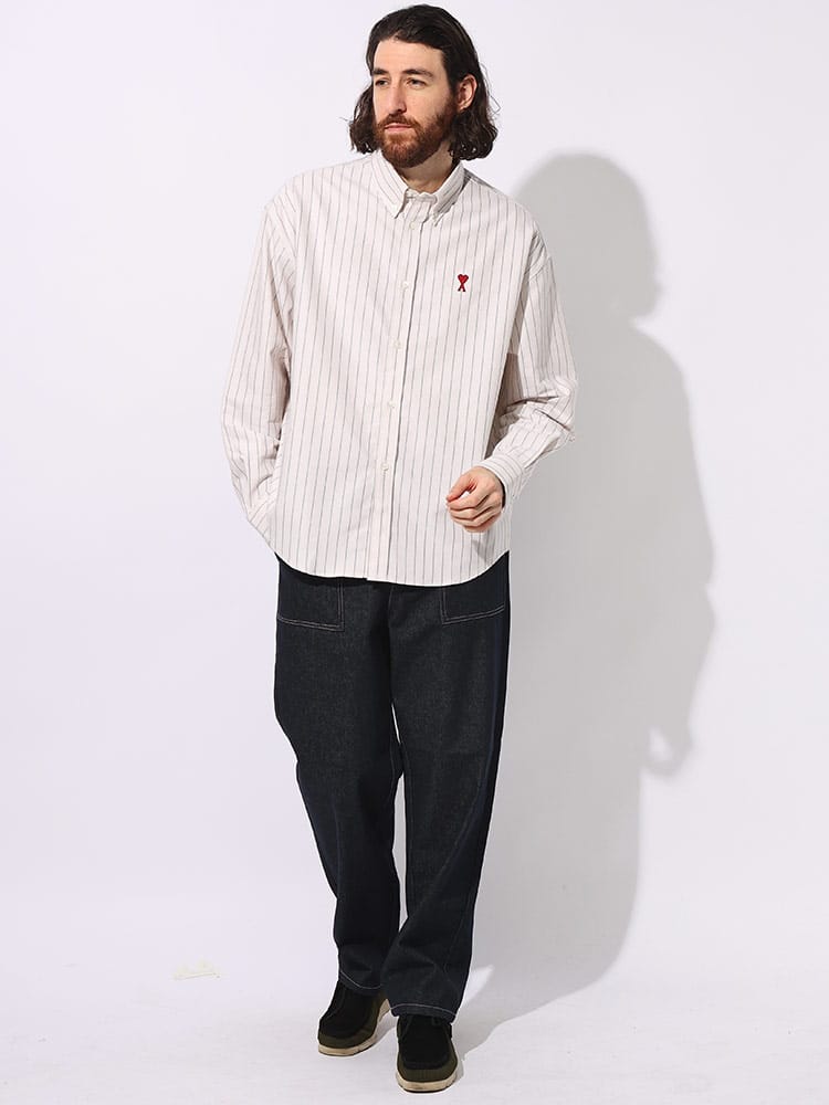 AMI PARIS(アミパリス)の長袖シャツは、コットン100%で作られた高品質なアイテム。ストライプ柄にロゴ刺繍が施され、洗練されたデザインが特徴。ボタンダウンのディテールがスタイリッシュな印象を与えます。日常からビジネスまで幅広く活躍する一着です。