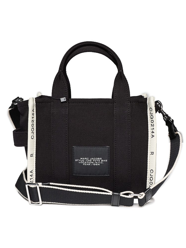 ジャカード織りのスモールトートが登場です。織りならではの凹凸のある生地を採用し、ソフトでありながらハリがあり、リュクス感が添えられています。ブラックのパイピングとこのバッグのためだけに作られたウェビングストラップが特徴的。裏側にはプロダクトネーム「TOTE BAG」、デザインスタジオの場所「N.Y.C」、Marc Jacobsがスタートした年「1984」がエンブロイダリーされたパッチ付きです。スモールサイズながらロングウォレットはもちろんペットボトルも入る、収納力抜群のサイズ感です。ショルダーストラップ付きなので、2WAYでお使いいただけます。別売りのストラップに変えてカスタマイズするのもオススメです。