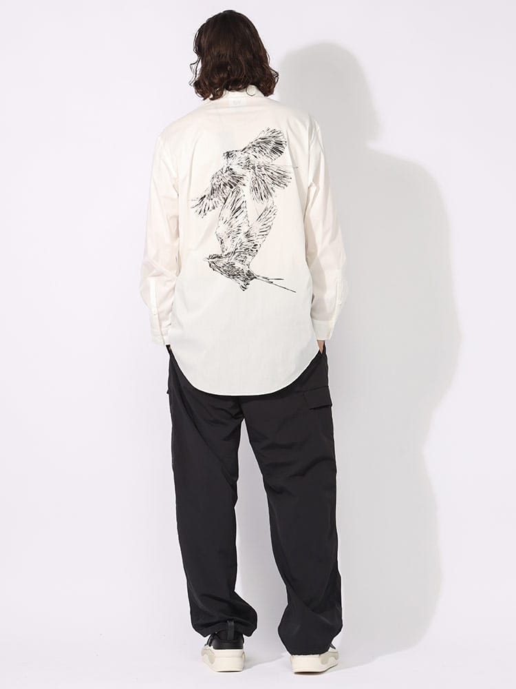 自然からインスピレーションを得たグラフィックを背面にあしらった「GFX SHIRT」。ストレッチ性を加えたコットンとナイロンブレンドの生地を使用し、襟とボタンがクラシックな雰囲気を添えています。