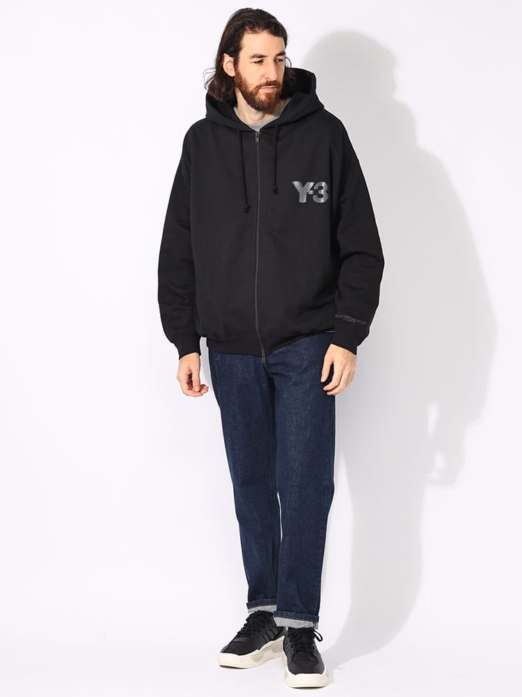 コットンブレンドの起毛フレンチテリー素材が、ゆったりとしたフィット感で身体を包み込む「LOGO ZIP HODDIE」。歪んだユニークなY-3ロゴがアクセントになったデザイン。