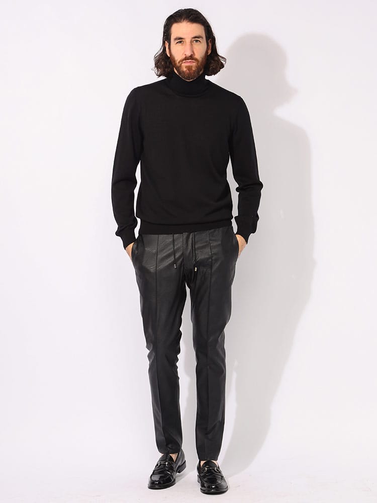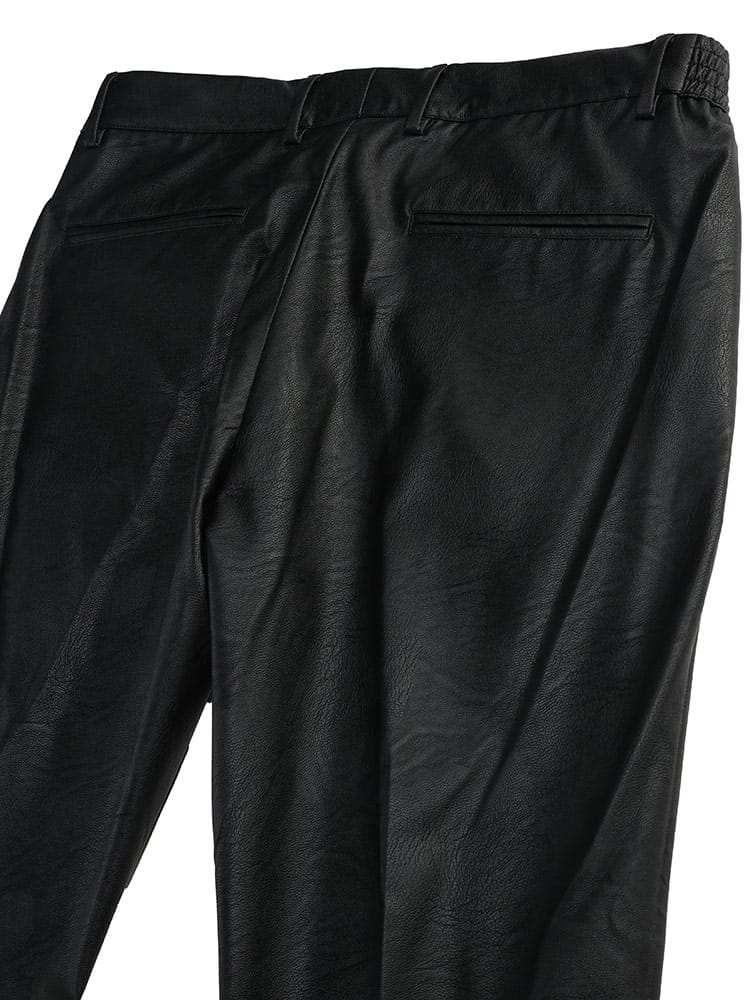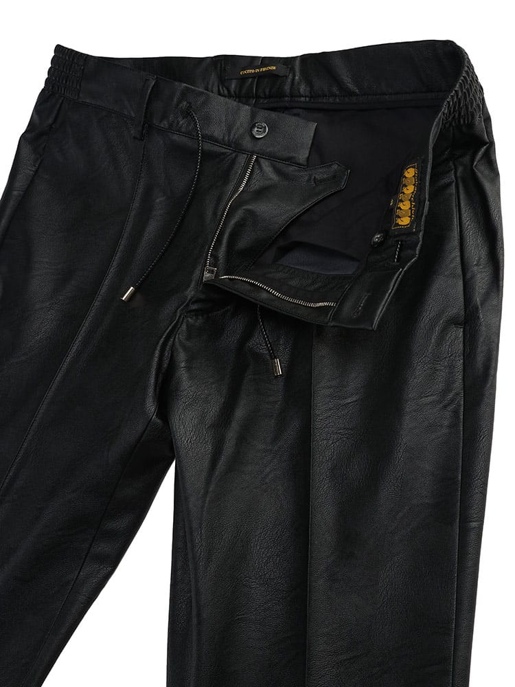 「 giabsarchivo 」アイコンモデルの「 MASACCIO 」モデルを更にグレードアップさせた「 MASACCIO GOLD / マサッチョ ゴールド 」。リラックスパンツであっても、スリムテーパードの美しいシルエットが特徴の大人気モデル。ドローコードとベルトループが兼備されているため、ドレス風な着こなしにも使える万能アイテム。さらに今回は「 giabsarchivio 」70周年を記念して特別に作られた「 MASACCIO GOLD 」です。使用する生地はリアルな見た目を追求したフェイクレザーストレッチ。従来の「 MASACCIO 」モデルの素材では出てこない今回だけの特別モデル。
