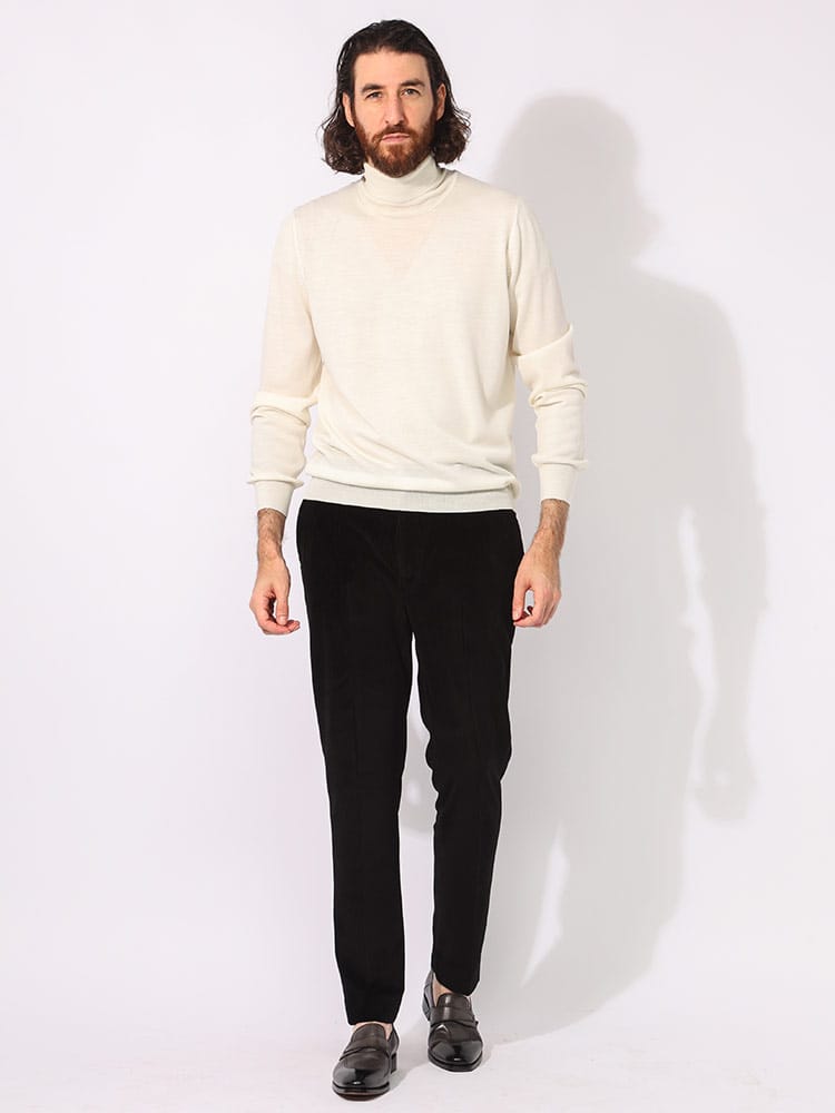 CIRCOLO 1901のコーデュロイノータックパンツは、上質なコーデュロイ素材を使用し、季節感と高級感を兼ね備えた一着です。柔らかな生地感が特徴で、肌触りが良く、快適な履き心地を提供します。ノータックデザインにより、シルエットはスリムでスタイリッシュ。コーデュロイの特有の表情豊かな素材感が、カジュアルなスタイルにもエレガントさをプラスします。秋冬のコーディネートに最適で、カジュアルからスマートカジュアルまで幅広いシーンで活躍するパンツです。