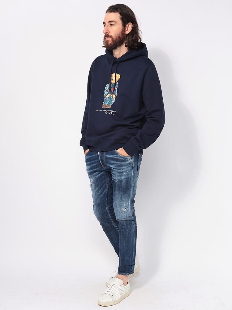 温かな裏起毛を採用したスウェットパーカー。フロントには人気のPoloベアをプリント。