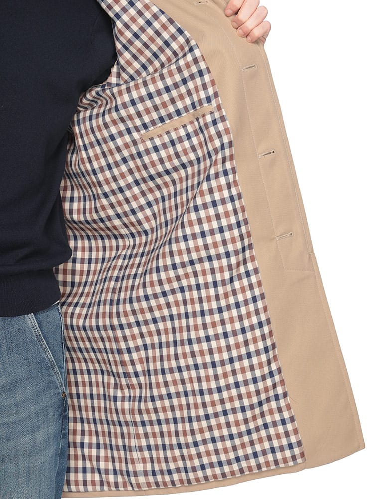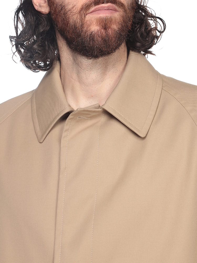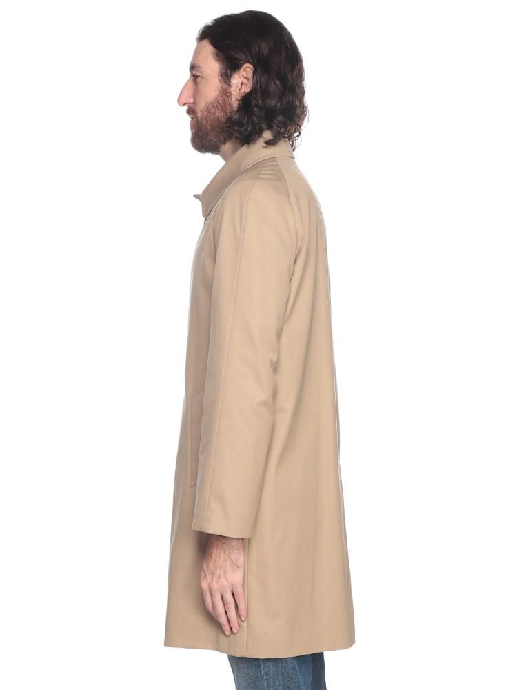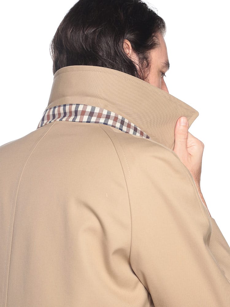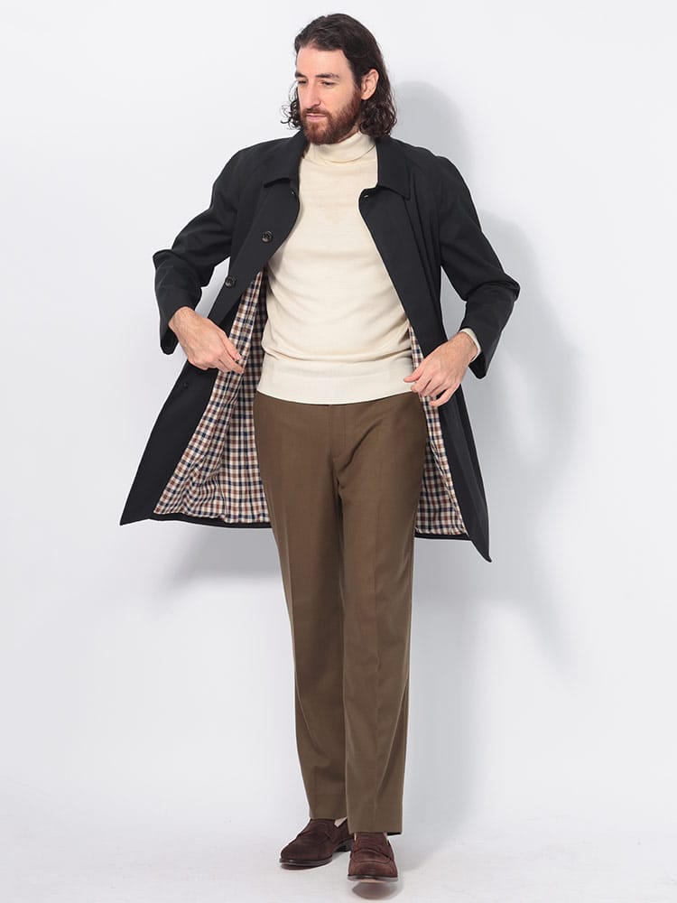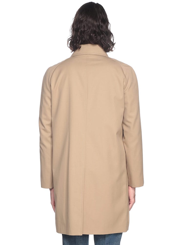 総裏チェックが施されたシングルボタンのステンカラーコート。クラシックなデザインとモダンなディテールが魅力です。軽やかな着心地でありながら、しっかりとした防寒性も兼ね備えています。シンプルで洗練されたシルエットは、ビジネスシーンからカジュアルスタイルまで幅広く活躍する一着です。