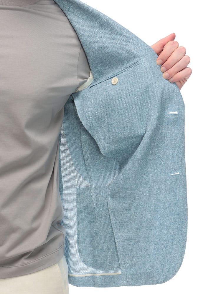 上質なウールとリネンをブレンドした、軽やかで清涼感のあるジャケットです。ラルディーニが得意とする、美しいシルエットと快適な着心地を両立。春夏シーズンに最適な、通気性と清涼感に優れた素材を使用しており、快適な着用感を提供します。カジュアルなスタイルにはもちろん、ビジネスシーンでも活躍する、汎用性の高いアイテムです。大人の男性の魅力を引き立てる、上品な一着です。
