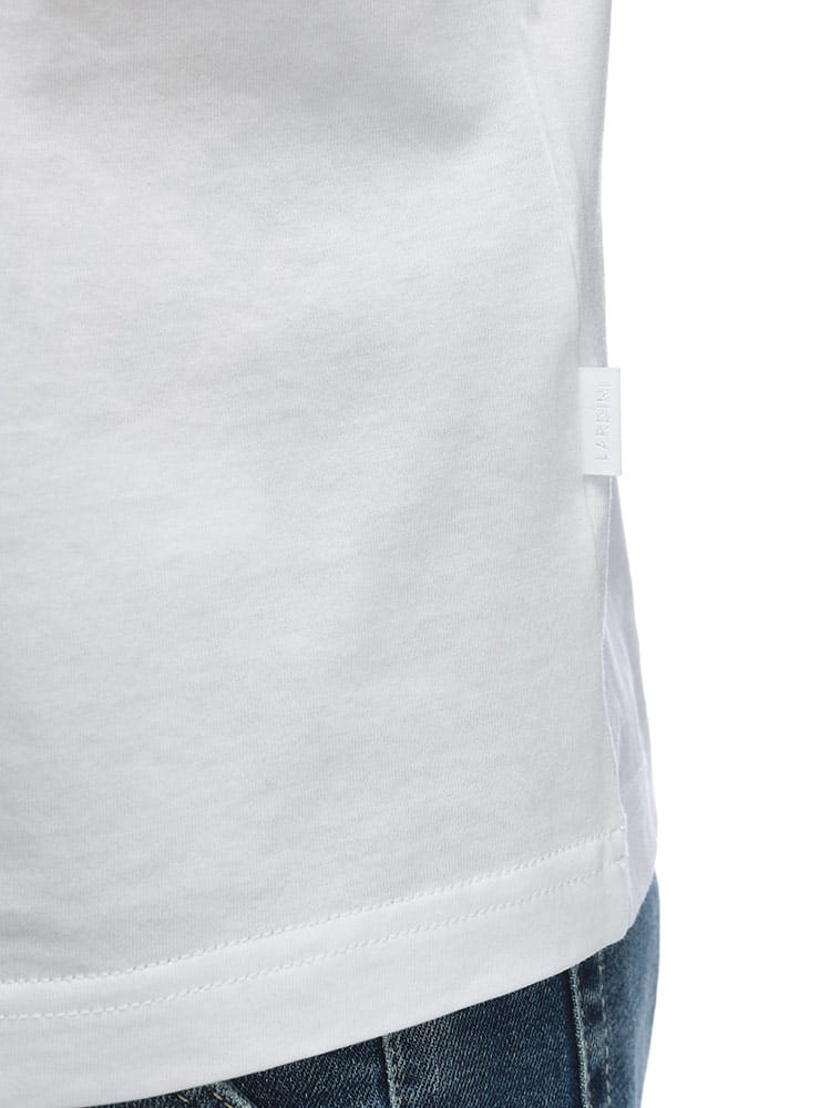 カジュアルながらも上品なスタイルを演出する、ラルディーニのTシャツです。上質なコットン素材を使用し、快適な着心地を実現。胸元のゴシックロゴが、さりげないアクセントとなり、洗練された印象を与えます。シンプルなデザインなので、様々なボトムスと相性が良く、カジュアルなスタイルはもちろん、ジャケットのインナーとしても活躍します。ラルディーニならではの丁寧な仕立てと、細部にまでこだわったデザインは、大人の魅力を引き立てます。