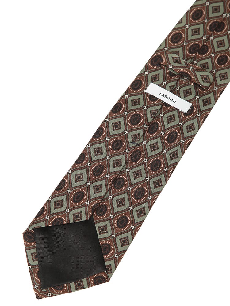 LARDINIのシルク100%総柄ネクタイは、上質なシルク素材が生み出す滑らかな質感と美しい光沢が魅力です。洗練された総柄デザインは、Vゾーンを華やかに演出し、ビジネスシーンからパーティーシーンまで幅広く活躍します。