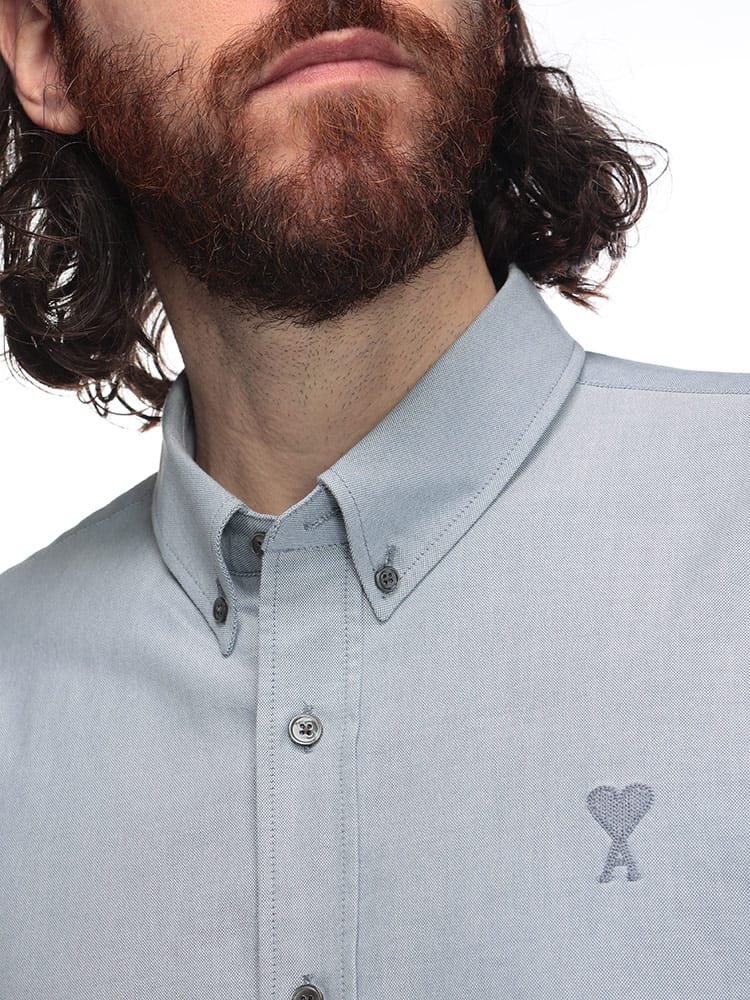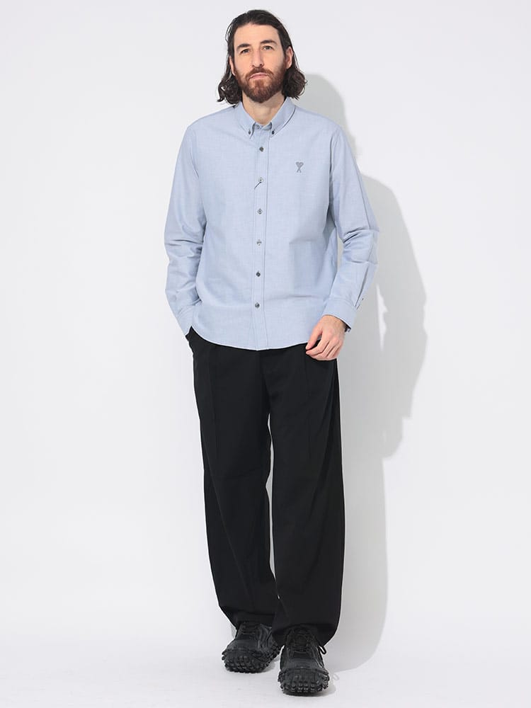 AMI PARISのワンポイント ボタンダウン 長袖 シャツは、胸元の「Ami de Coeur」刺繍が特徴的な、シンプルながらも洗練されたデザインのアイテムです。上質なコットン素材を使用し、快適な着心地を実現。カジュアルからきれいめまで、幅広いスタイルにマッチします。