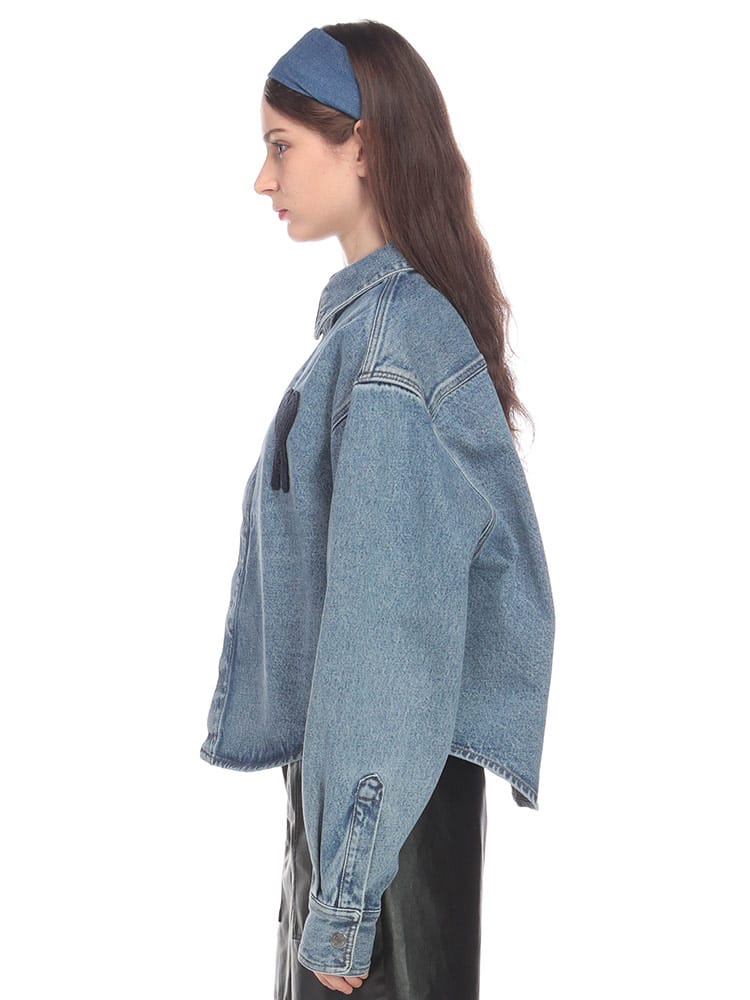 Ami de Coeur ウォッシュドデニム クロップド シャツは、カジュアルながらも洗練されたスタイルを叶える、レディース向けのアイテムです。このシャツは、カジュアルながらも女性らしいスタイルを楽しみたい方におすすめです。