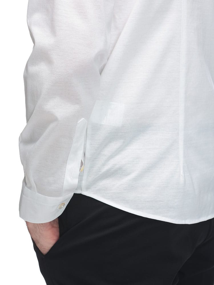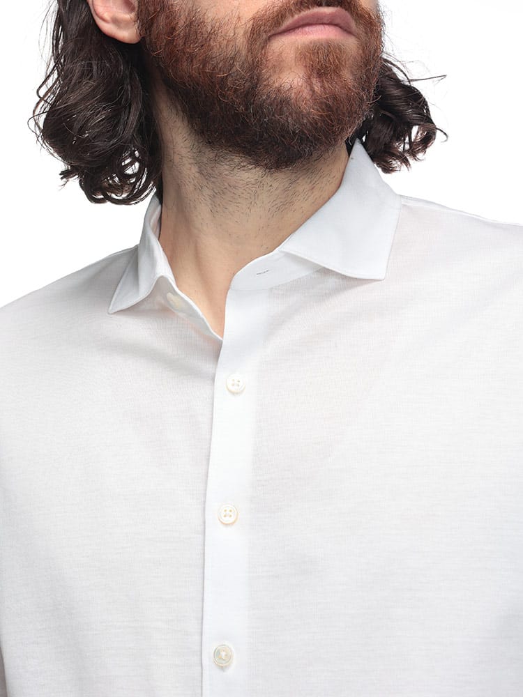 極上の着心地と上品さを両立。大人のためのジャージーシャツ。イタリアの老舗ニットブランド「GRANSASSO」から、極上の着心地と上品なルックスを兼ね備えたジャージーシャツが登場。上質な綿100%のジャージー素材を使用し、柔らかな肌触りと快適な着心地を実現しました。特徴的なジャージー素材は、伸縮性に優れ、動きやすく、ストレスフリーな着用感です。まるでカットソーのような快適さでありながら、シャツの上品さを兼ね備えています。襟型は、エレガントなホリゾンタルカラーを採用。ノーネクタイでも上品に着こなせるので、ビジネスシーンはもちろん、カジュアルな装いにもマッチします。GRANSASSOならではの高度なニット技術により、美しいシルエットと快適なフィット感を実現。ドレスシャツの仕立てをベースに、ニットの要素をプラス。オンオフ問わず、幅広いシーンで活躍します。