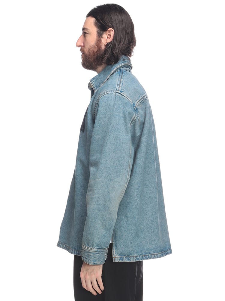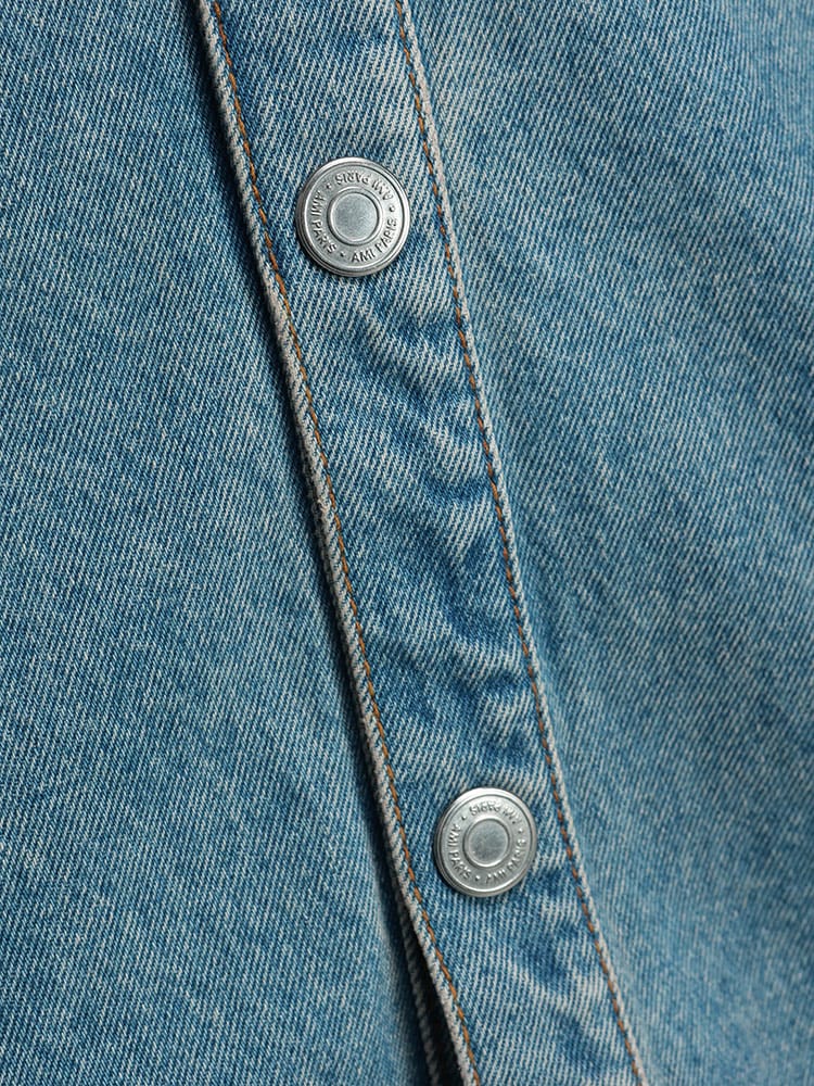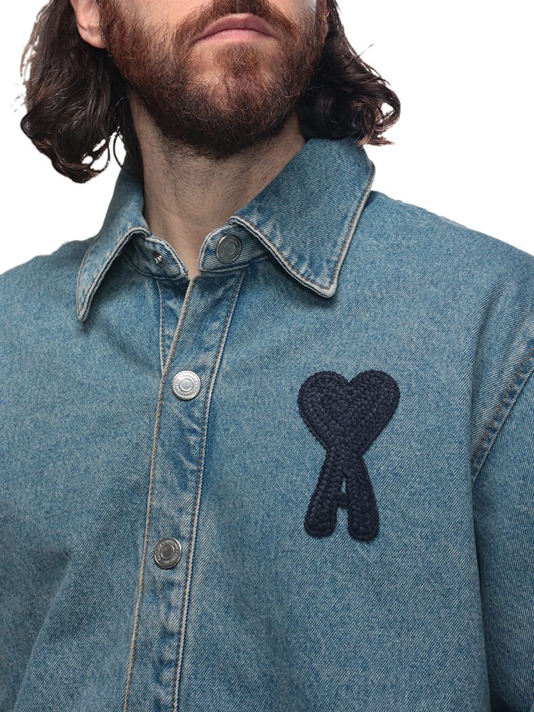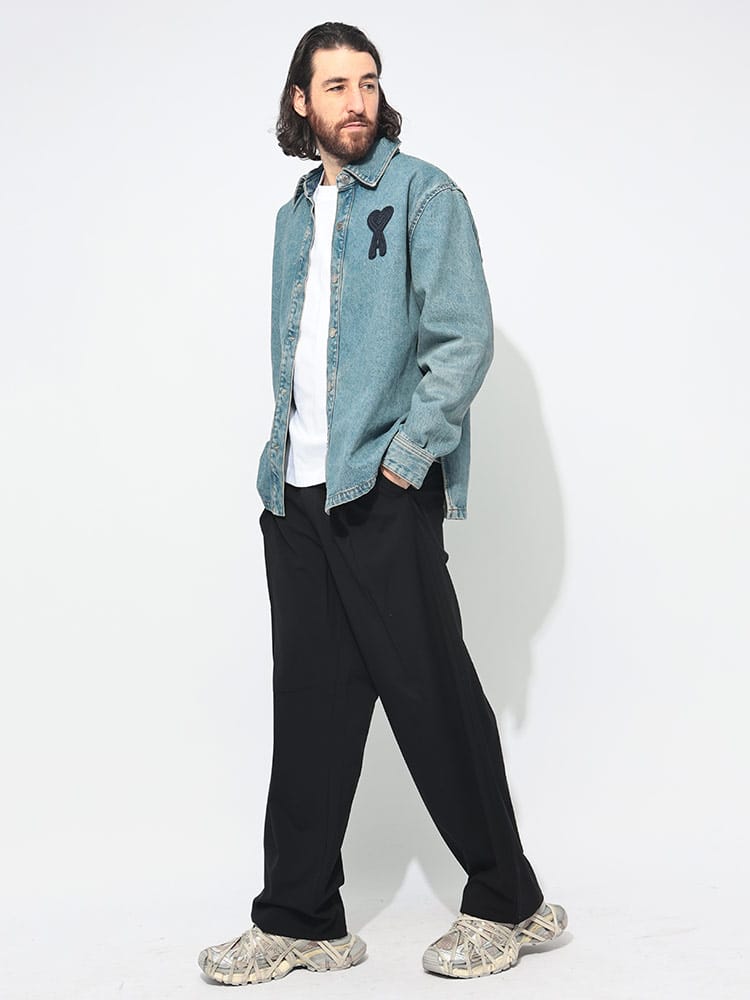 洗練されたカジュアルスタイルを演出。胸元ロゴが光るデニムオーバーシャツ。パリ発の注目ブランド「AMI PARIS」から、カジュアルながらも洗練された雰囲気を纏うデニムオーバーシャツが登場。胸元に施されたブランドロゴが、さりげないアクセントをプラスします。素材には、上質な綿100%のデニム生地を使用。程よい厚みがありながらも、柔らかく快適な着心地を実現しました。オーバーサイズシルエットなので、リラックス感のある着こなしが楽しめます。フロントのフルボタン仕様で、羽織りとしても、トップスとしても着用可能。両胸にはフラップポケットを配し、機能性とデザイン性を両立。
