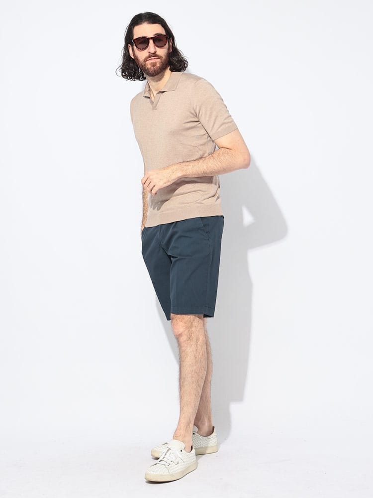 シンプルながらも上品な佇まいで、大人の男性にふさわしい一着です。最高級のシルクを100%使用した生地は、滑らかな肌触りと美しい光沢が特徴。スキッパー襟が、ポロシャツに抜け感をプラスし、カジュアルながらも上品な印象を与えます。シンプルなデザインなので、様々なボトムスと相性が良く、着回し力も抜群。上質な素材と洗練されたデザインは、ワンランク上のカジュアルスタイルを演出します。春夏のワードローブにぜひ加えていただきたいアイテムです。