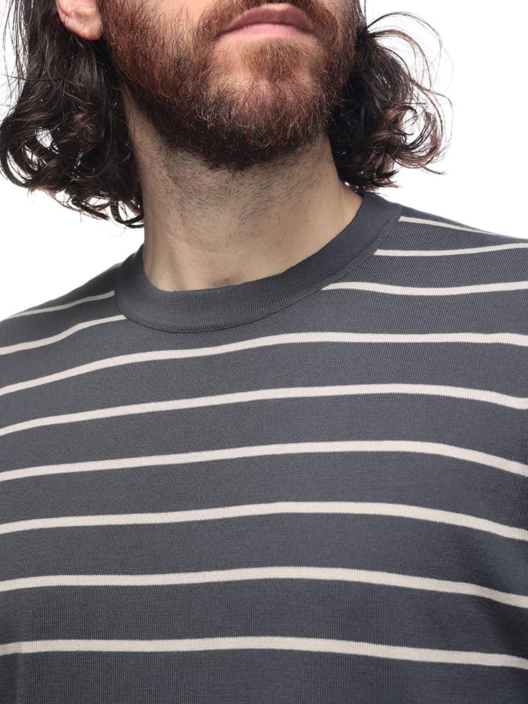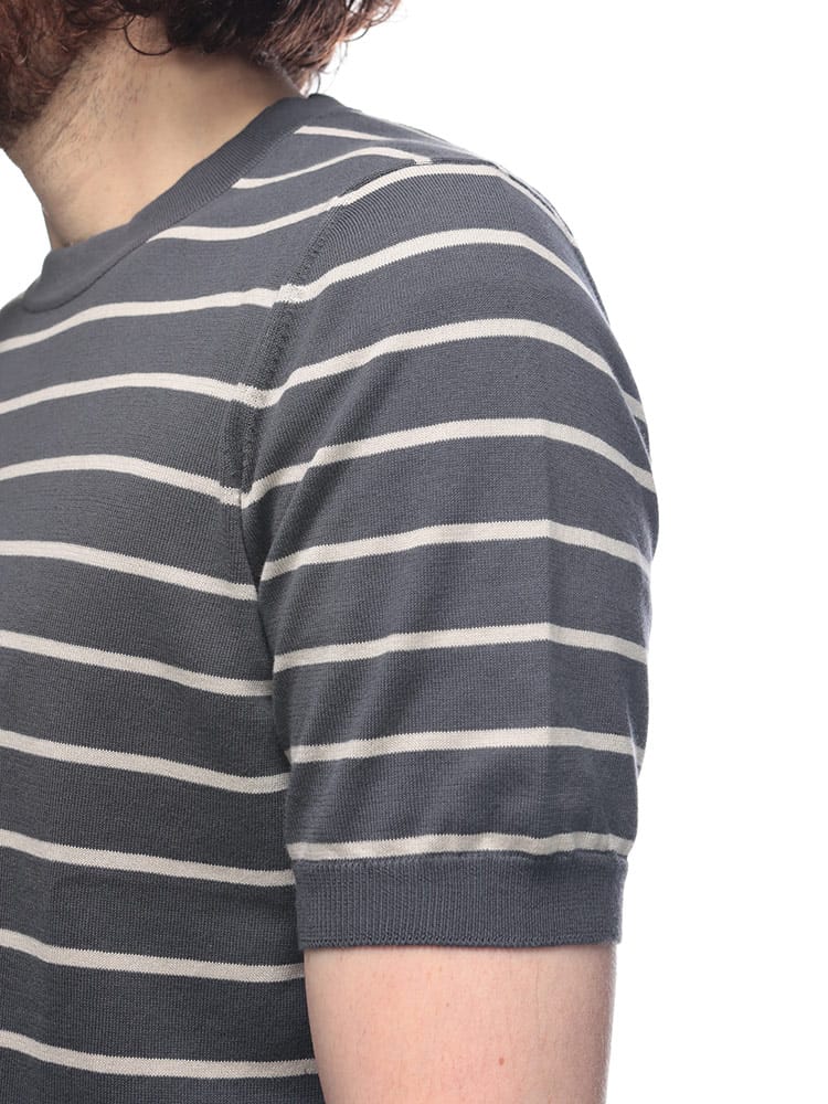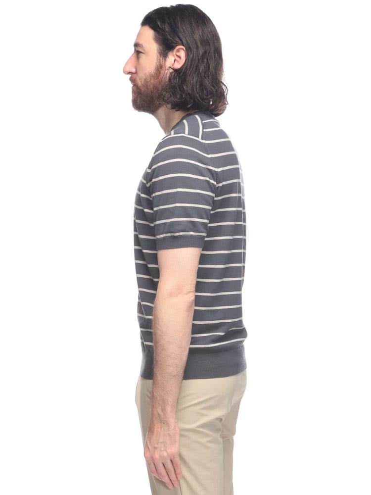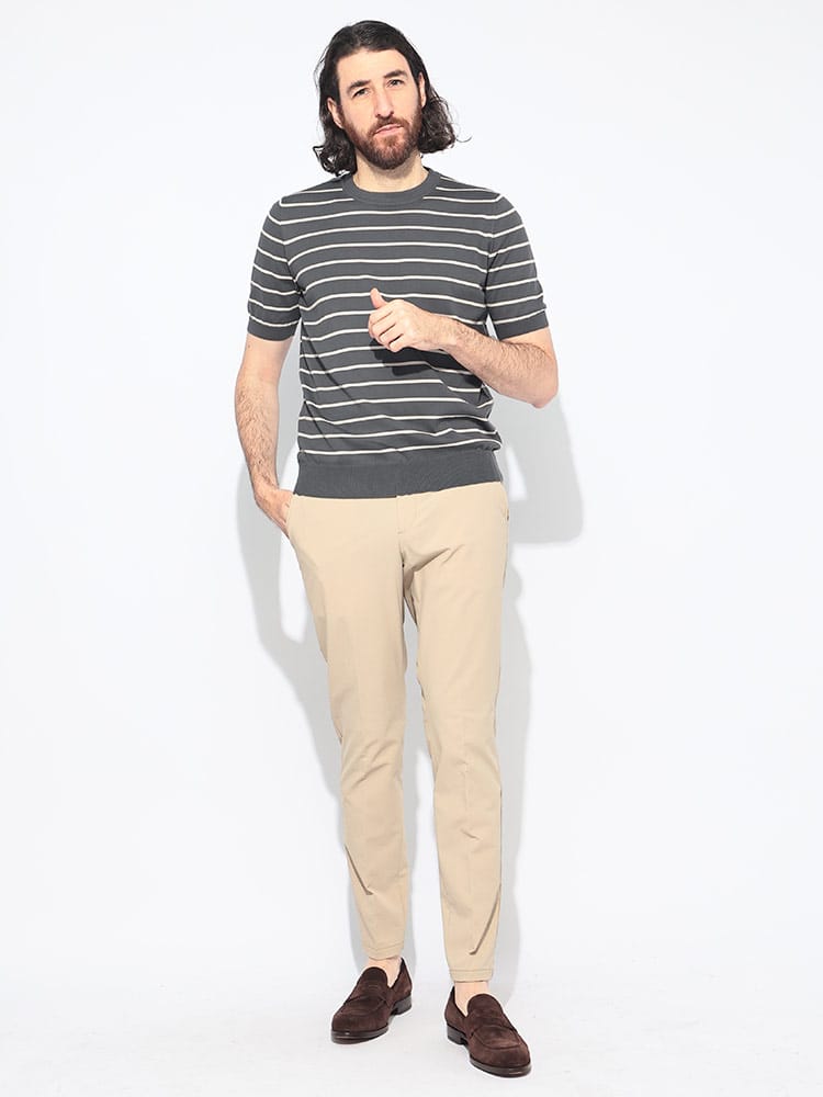 カジュアルながらも上品な着こなしを叶える、大人の男性にぴったりのアイテムです。上質なコットンを100%使用したニット素材は、肌触りが良く、快適な着心地を提供します。シンプルなクルーネックデザインに、爽やかなボーダー柄がアクセントとなり、一枚で着てもインナーとしても活躍します。洗練されたデザインと高品質な素材は、カジュアルスタイルをワンランク上に引き上げます。春夏のワードローブにぜひ取り入れていただきたい、おすすめの一着です。