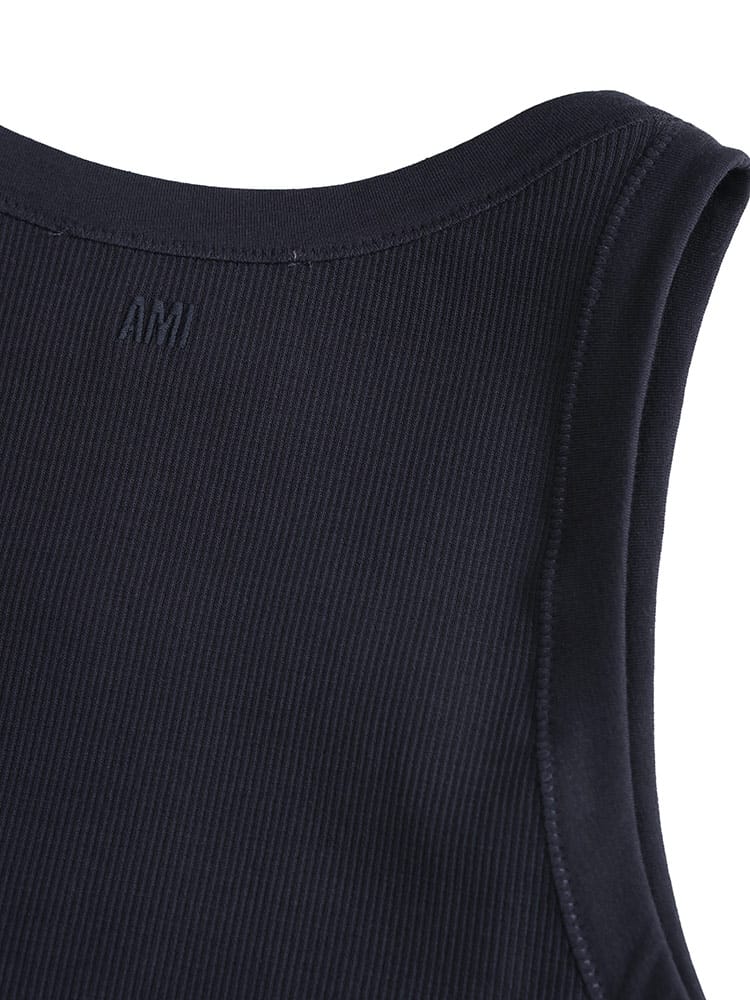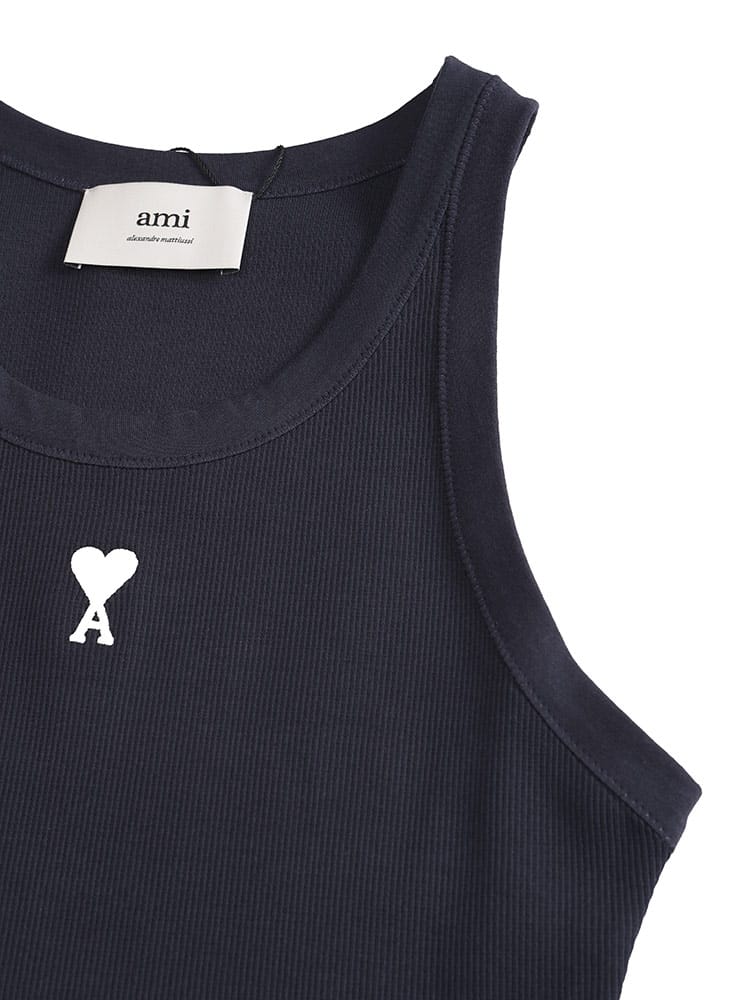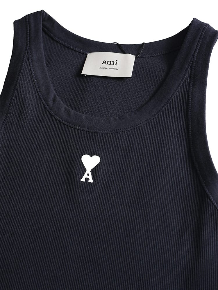 Ami de Coeur タンクトップは、体に沿うフィット感が特徴のアイテムです。上質なコットンリブ素材を使用し、快適な着心地を提供します。胸元のオフホワイトのAmi de Coeur刺繍と、首元後ろの同系色AMI刺繍が、さりげないアクセントになっています。シンプルながらも洗練されたデザインで、様々なコーディネートに合わせやすく、インナーとしても、一枚着としても活躍するアイテムです。