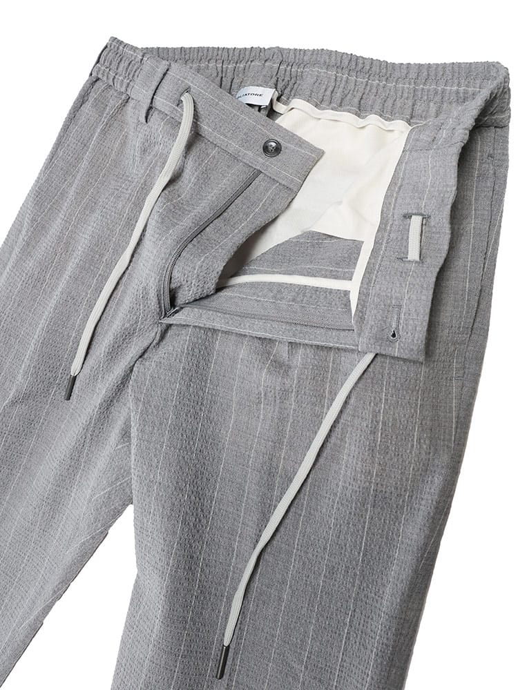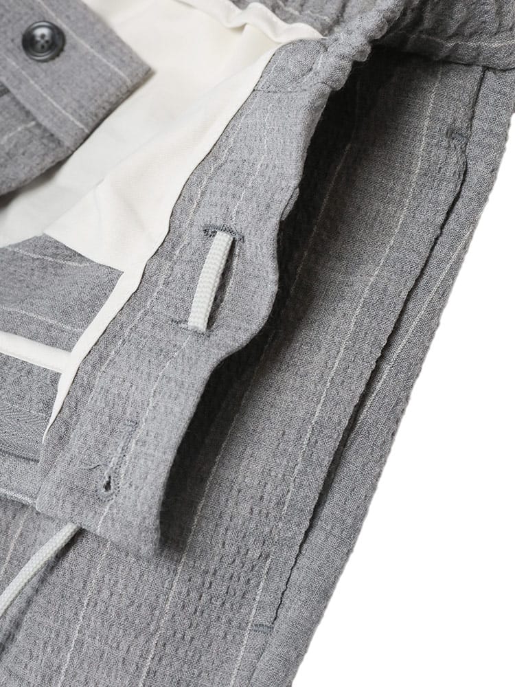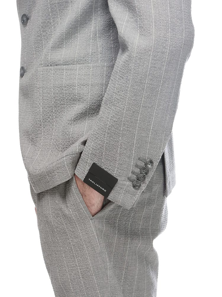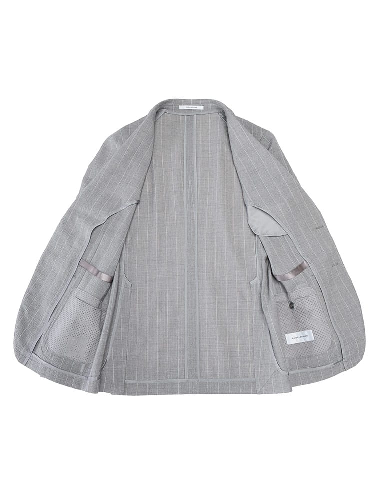 タリアトーレのシアサッカーストライプシングルジャケットとウエストコードパンツのスーツは、洒脱な大人のためのセットアップ。清涼感のあるシアサッカー生地に、さりげないストライプが上品な印象を与えます。ジャケットはシングル2つボタン、サイドベンツで動きやすく、ビジネスシーンにも対応可能。ウエストコード仕様のパンツは、快適な穿き心地ながらも、きちんと感をキープ。それぞれ単品でも着回せる汎用性の高さも魅力です。春の装いを軽やかに、そしてスタイリッシュに彩る一着です。