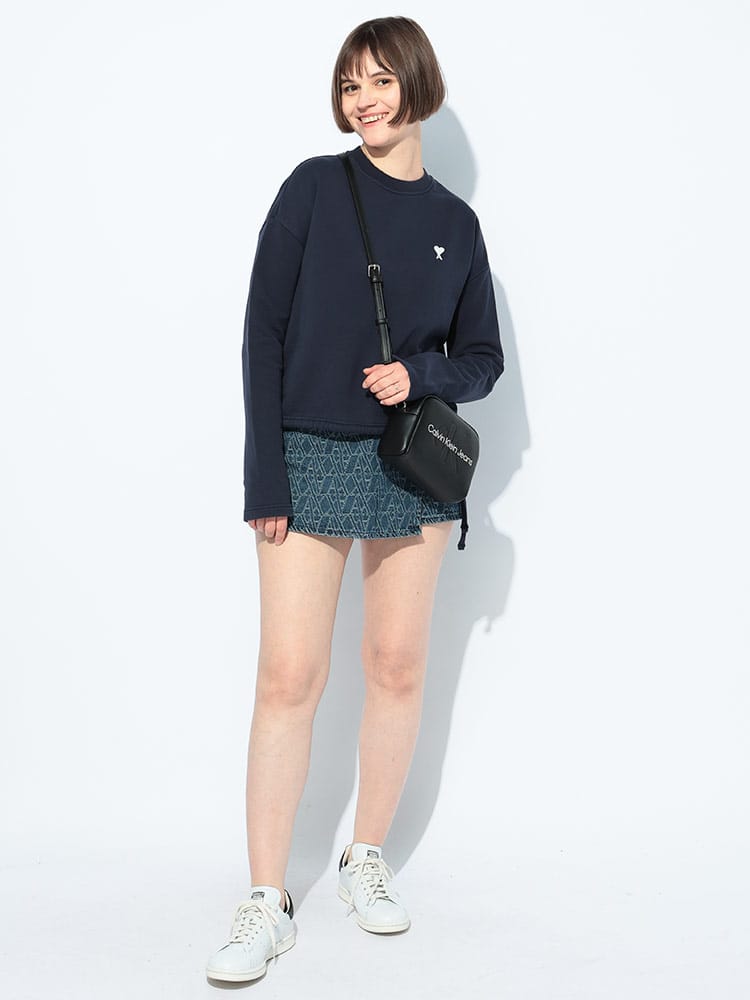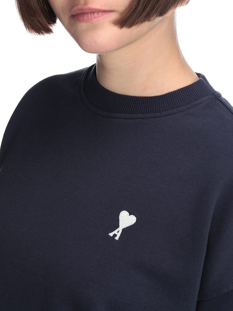 AMI PARISのアイコニックなクルーネックトレーナー。胸元のAMI DE COEUR刺繍がブランドのシグネチャーを飾ります。トレンドのショート丈に裾のドローコードを備え、バランス良く着こなせるデザイン。上質なコットン裏毛素材の快適な着心地で、大人のカジュアルスタイルを格上げするアイテムです。