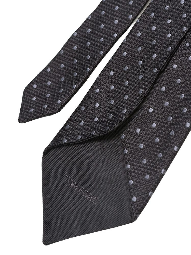 TOM FORDのドット柄シルクネクタイは、上質なシルクの光沢と柔らかな手触りが魅力です。洗練されたドット柄が、ビジネスシーンはもちろん、特別な日の装いにも上品なアクセントを添えます。結びやすく、Vゾーンを華やかに演出するこのネクタイは、あなたのスタイルをワンランクアップさせるタイムレスな逸品です。
