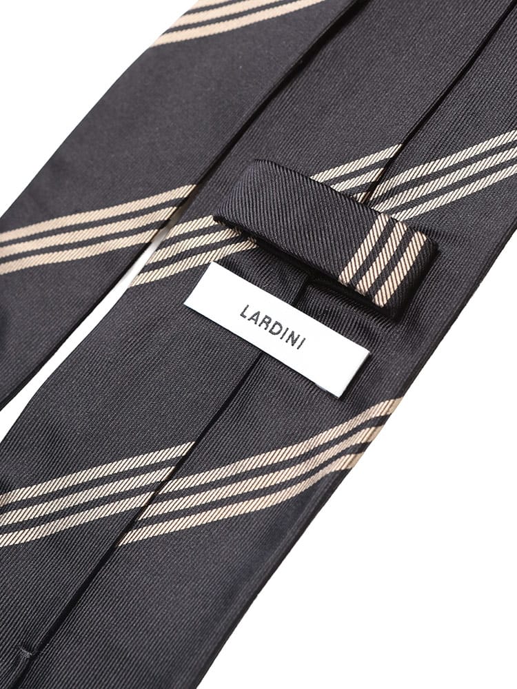 LARDINIのレジメンタルタイは、上質なシルクの柔らかな光沢と、クラシックなレジメンタル柄が魅力です。ビジネスシーンはもちろん、品格ある装いを求める場面に最適。Vゾーンに洗練された印象を与え、どんなスーツスタイルもエレガントに引き立てます。タイムレスなデザインで、長く愛用できる一本です。