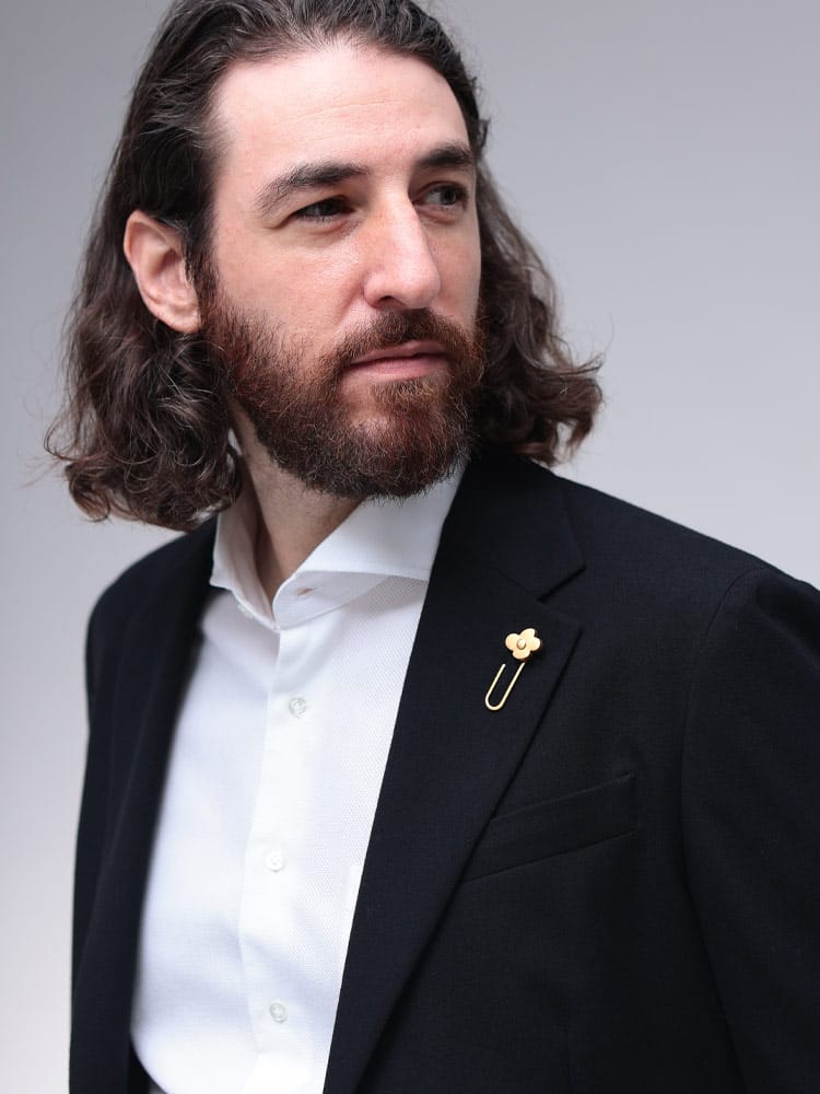 LARDINIのゴールドピンブートニエールは、ジャケットのラペルに華やかさを添えるアクセサリーです。ブランドの象徴であるフラワーモチーフを象徴し、ゴールドの輝きが上品さを際立たせます。シンプルなジャケットもこれ一つで、洗練された大人のスタイルへと格上げしてくれます。ビジネスからカジュアルまで、幅広いシーンで活躍する逸品です。