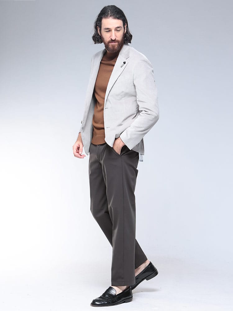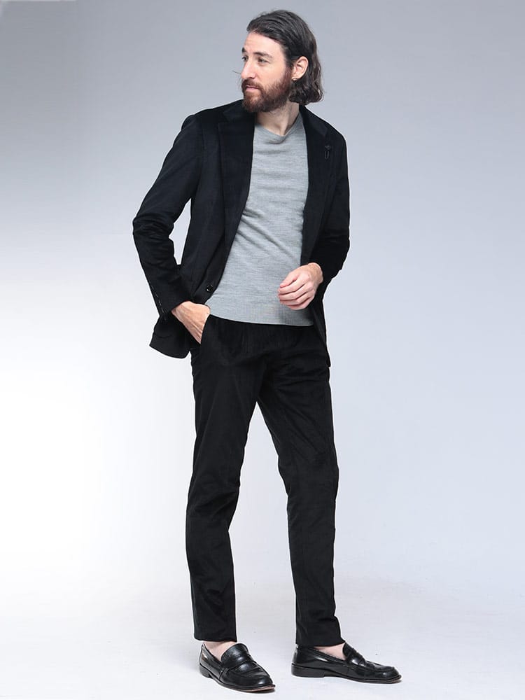 温かみのある上質なコーデュロイ素材を使用。ラルディーニらしい洗練された仕立てと、シングル2つ釦のクラシックなデザインが融合し、上品なカジュアルスタイルを演出します。同素材のアイテムと合わせれば、洗練されたセットアップスタイルが完成。秋冬の着こなしに深みと個性を加える、大人のための逸品です。