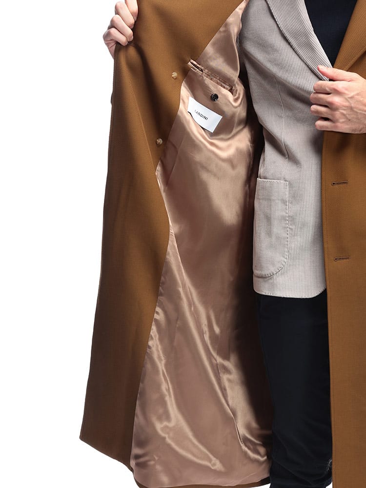 上質なウールツイル素材が持つなめらかな肌触りと、美しいドレープが魅力。クラシックなトレンチコートのデザインに、ラルディーニらしい洗練された仕立てが光ります。ビジネスシーンからカジュアルまで幅広く対応し、羽織るだけで上品な大人のスタイルを演出。秋冬のコーディネートを格上げする、タイムレスな一着です。