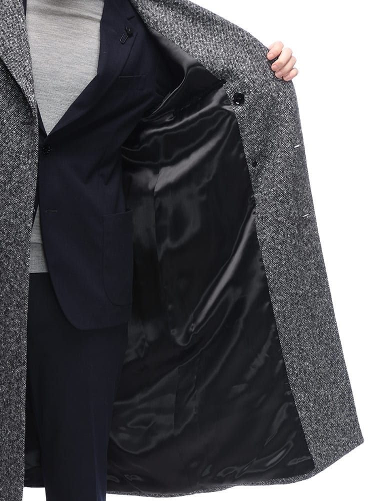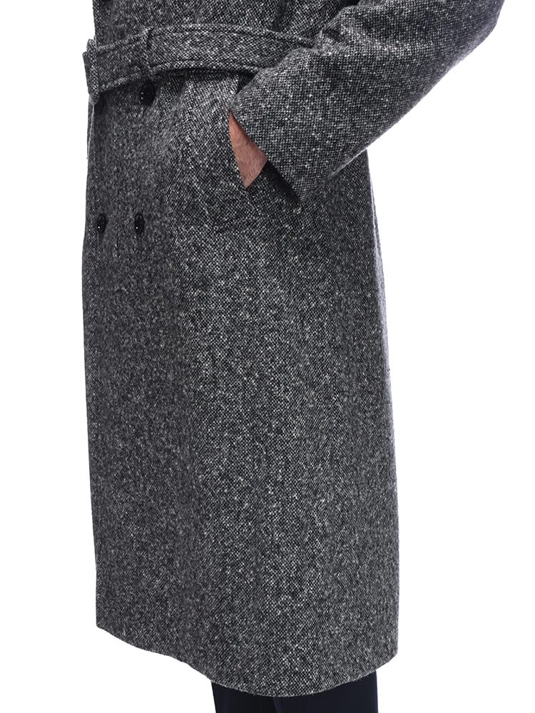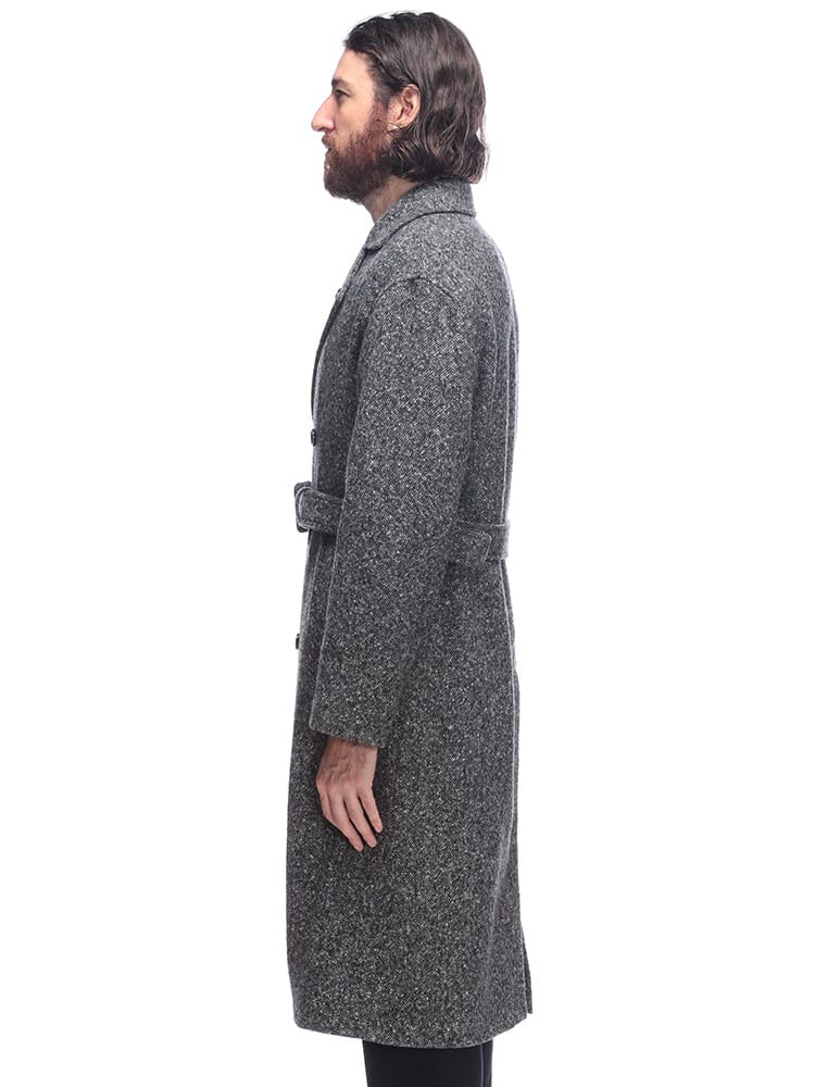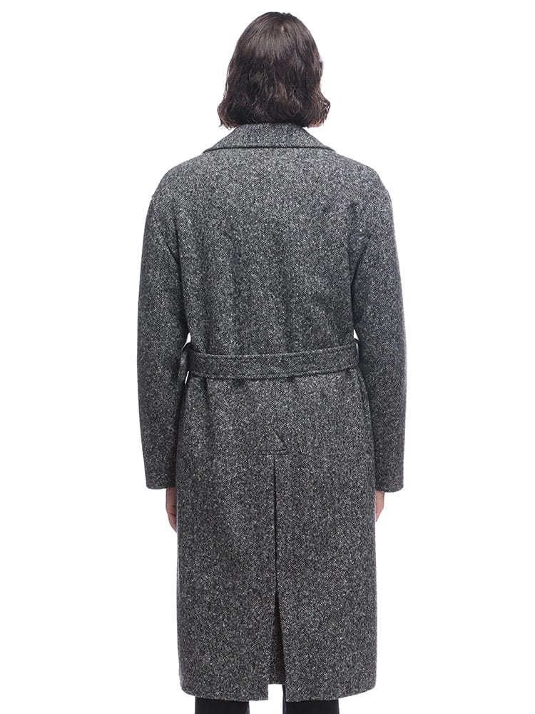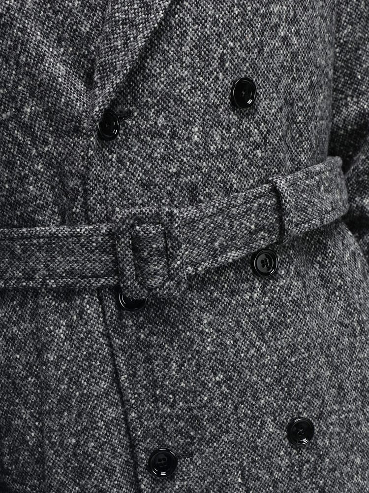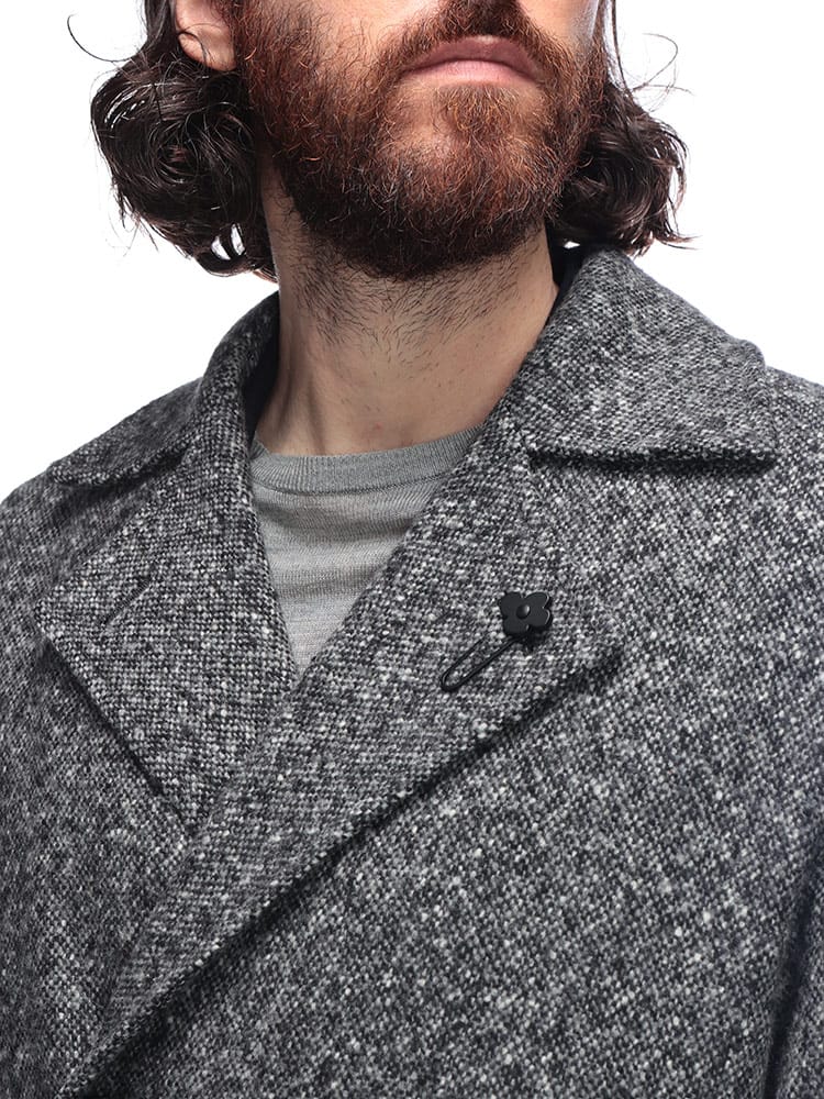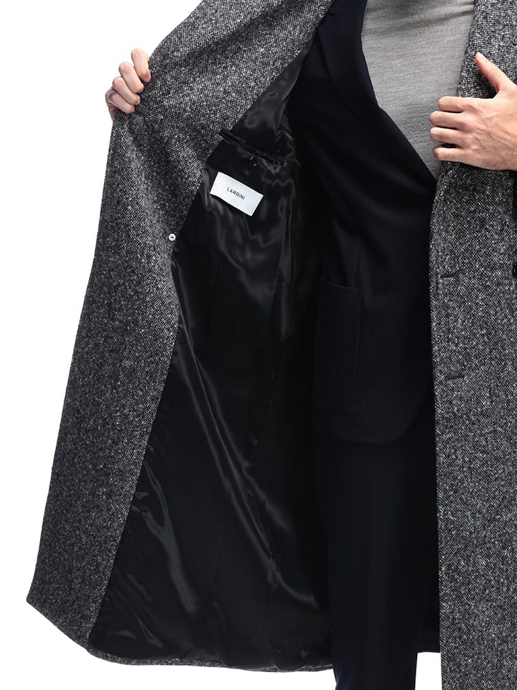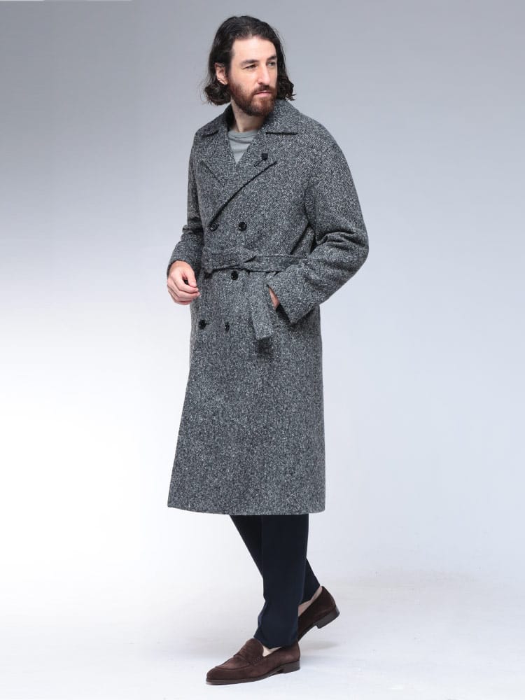 素朴で温かみのあるホームスパン素材が特徴。クラシックなトレンチコートのデザインに、ラルディーニならではの洗練された仕立てが融合し、上品なカジュアルスタイルを演出します。ビジネスシーンはもちろん、普段使いにも最適で、羽織るだけで着こなしに深みと個性を加える、秋冬のワードローブに欠かせない一着です。