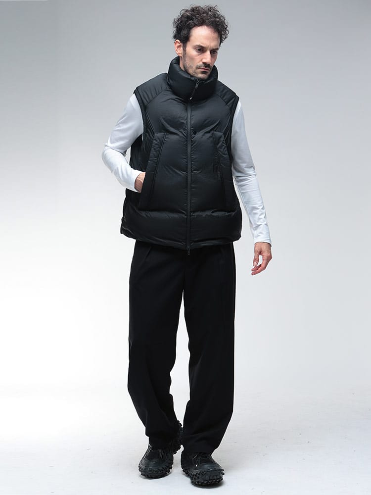 モードとスポーツの融合を体現する、Y-3のダウンベスト。ミニマルなデザインながらも、上質なダウンを90%使用しており、抜群の保温性を誇ります。光沢感のあるナイロン素材が都会的な印象を与え、サイドには機能的なジップポケットを配置。ダブルジップ仕様で着こなしの幅も広がります。シャツやスウェットに重ねるだけで、洗練されたレイヤードスタイルが完成する、秋冬のワードローブに欠かせない一着です。