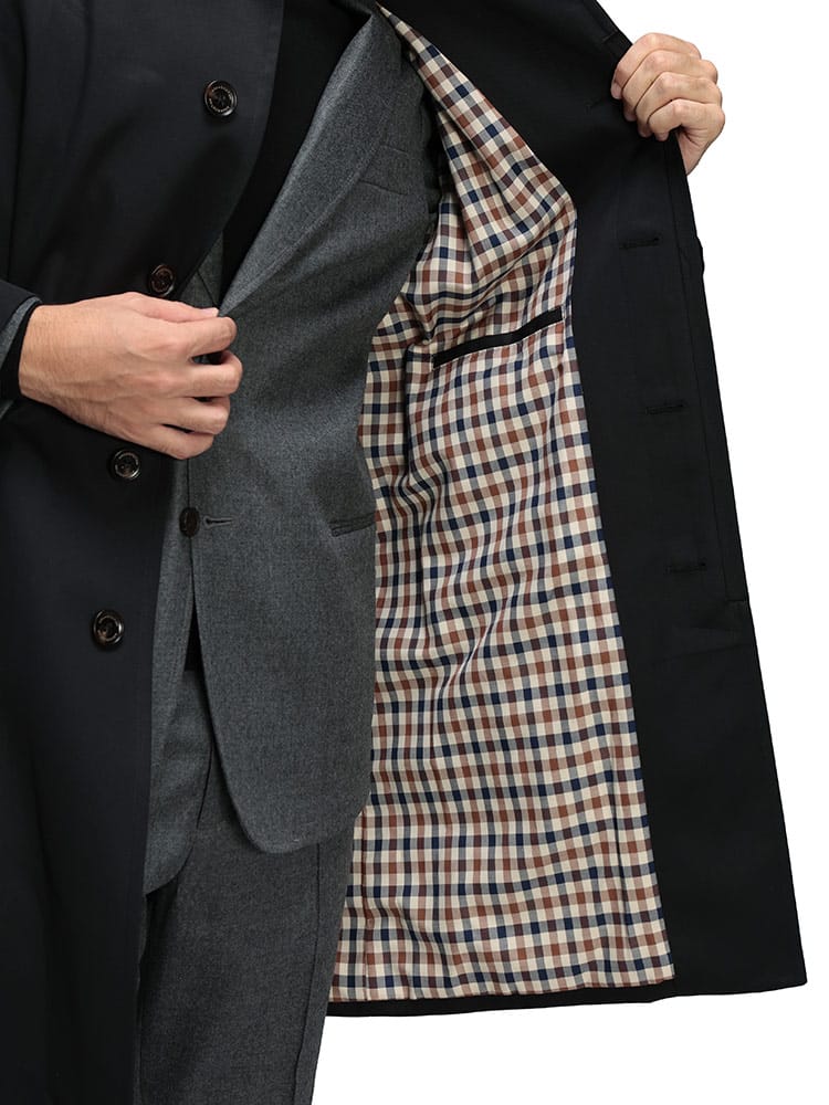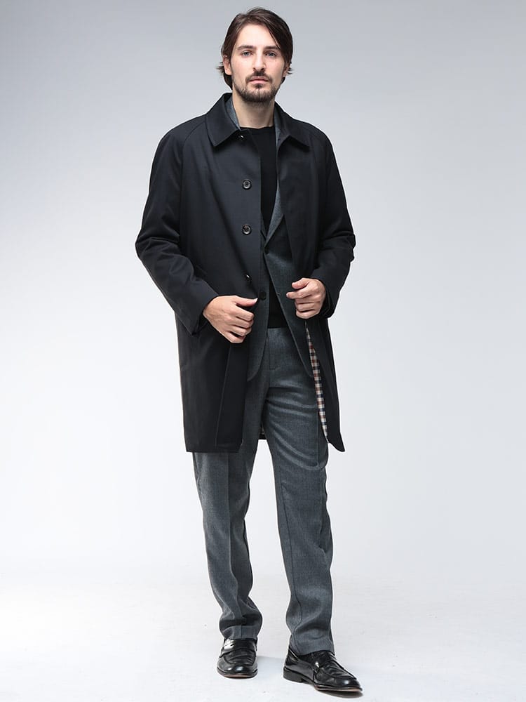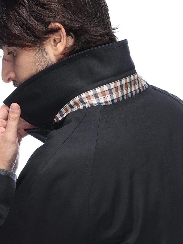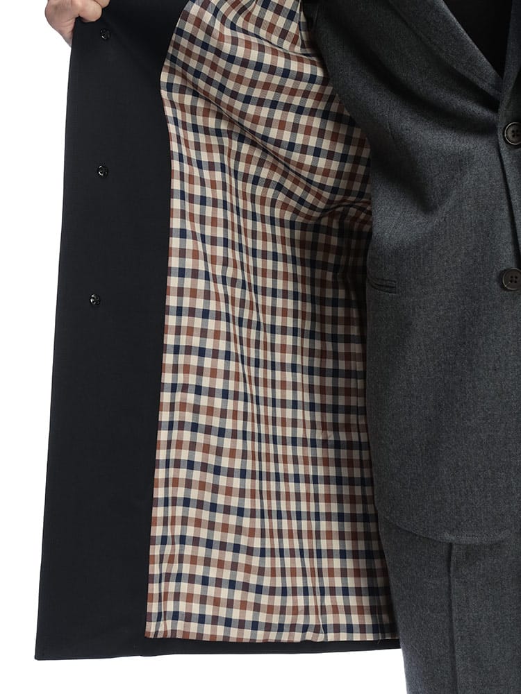 Aquascutumのシングルボタン ステンカラーコートは、普遍的なデザインと総裏のハウスチェックが魅力です。シンプルながらも上質な雰囲気をまとい、ビジネスからカジュアルまで幅広く対応。裏地から覗くチェックがさりげない個性を演出する、大人のための定番アウターです。