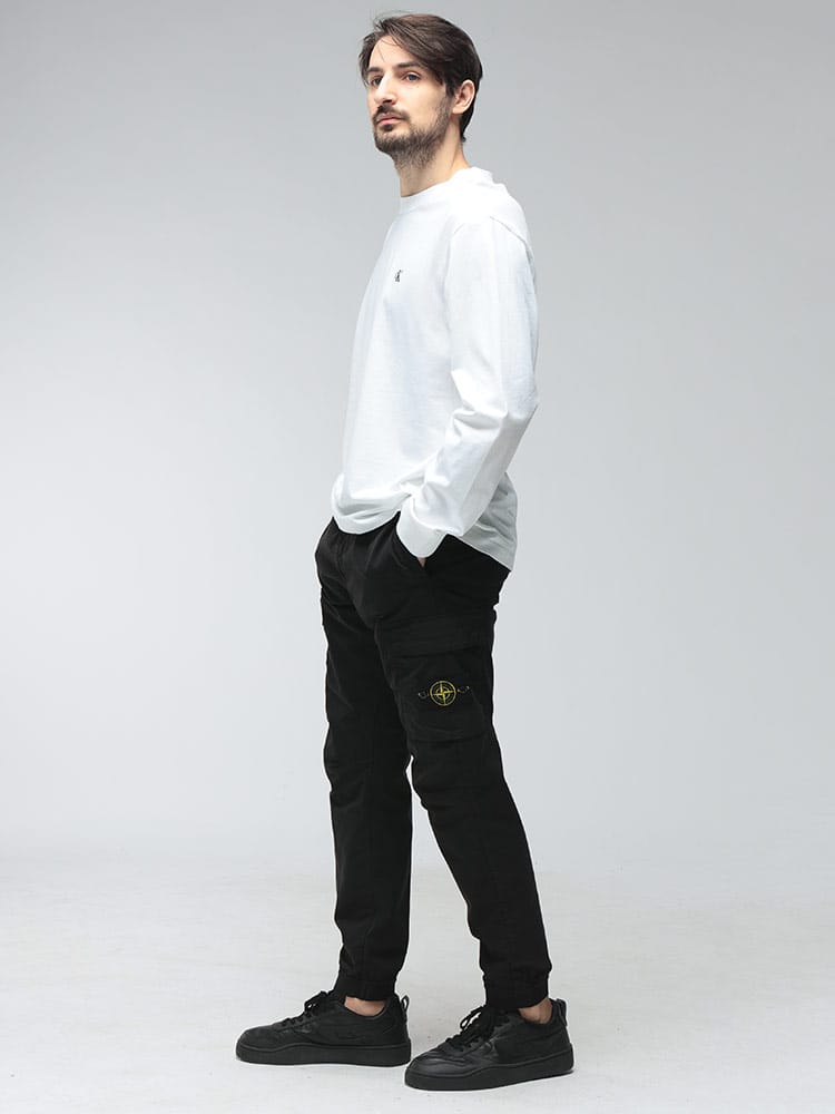 独創的なエンジニアリングが光る、ストレッチオーガニックコットンツイル製のカーゴパンツです。環境に配慮した上質な素材にストレッチを効かせ、アクティブな動きにも対応する抜群の穿き心地を実現。製品染めによる独特の風合いと立体的なシルエットが、都会的なミリタリースタイルを演出します。左脚のアイコニックなコンパスパッチが象徴的な、機能美とスタイルが融合したテクニカルな一着です。