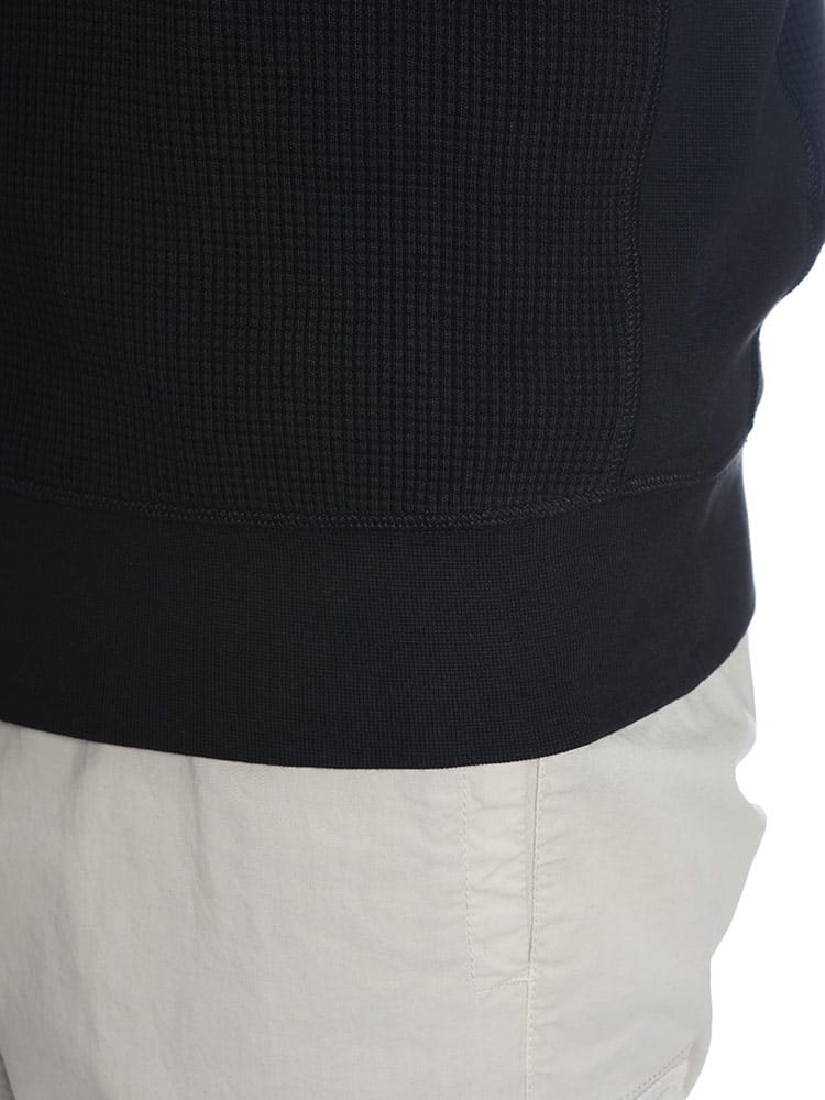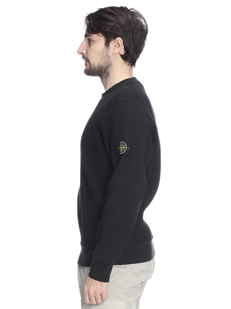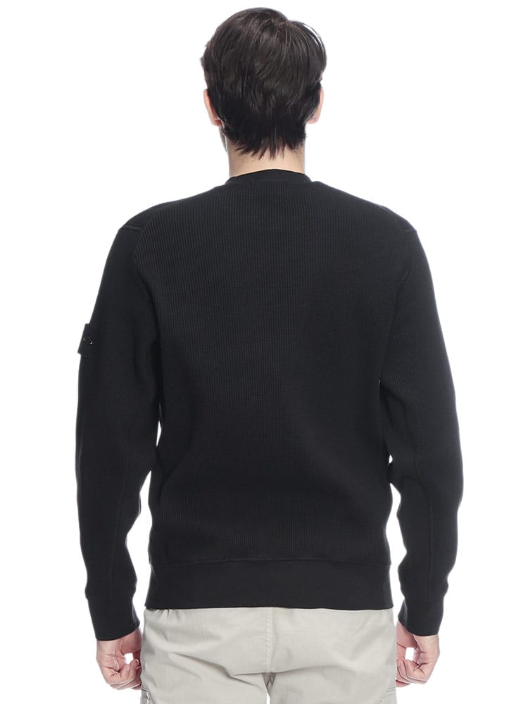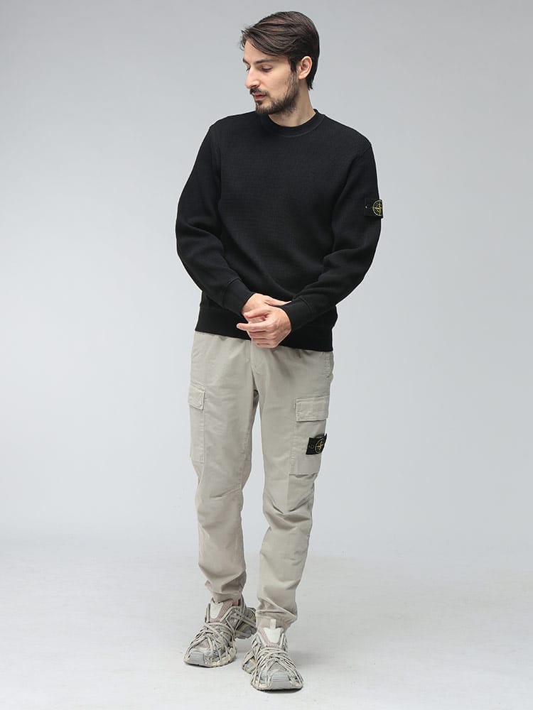 ストーンアイランドのこだわりが凝縮された、オーガニックコットンワッフルフリース製のトレーナーです。表情豊かなワッフル編みのテクスチャが、シンプルながらも奥行きのある洗練された印象を与えます。製品染め(ガーメントダイ)特有の深みのある色合いと、左袖に配されたアイコニックなコンパスパッチがブランドの矜持を主張。保温性と通気性に優れた快適な着心地で、日常のスタイルに機能美と高級感をプラスする一着です。