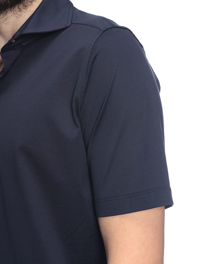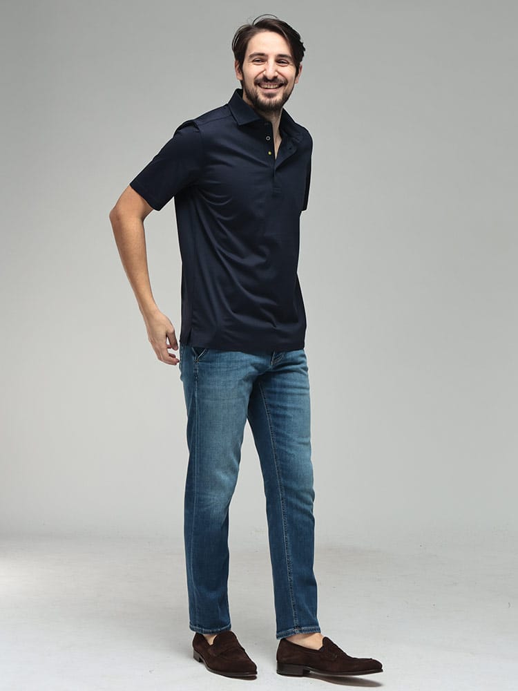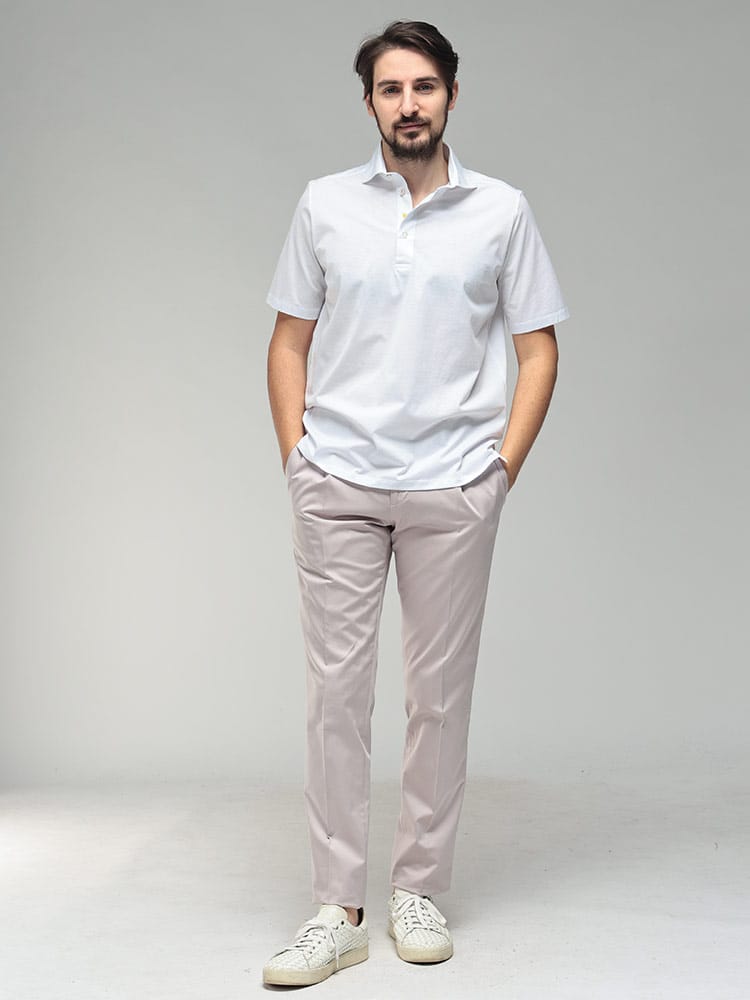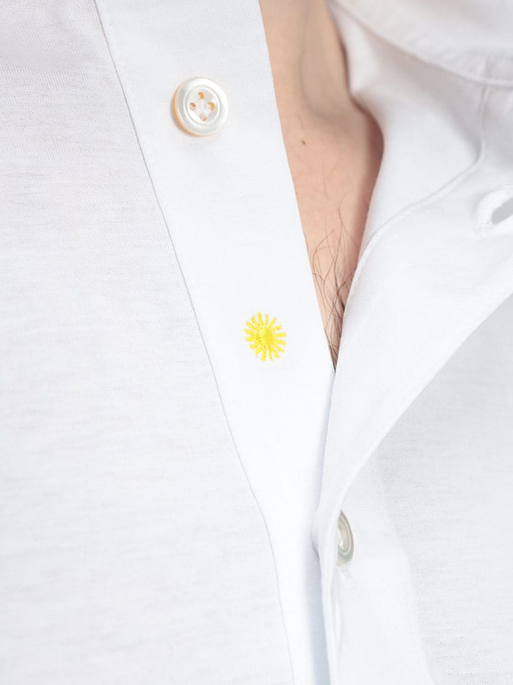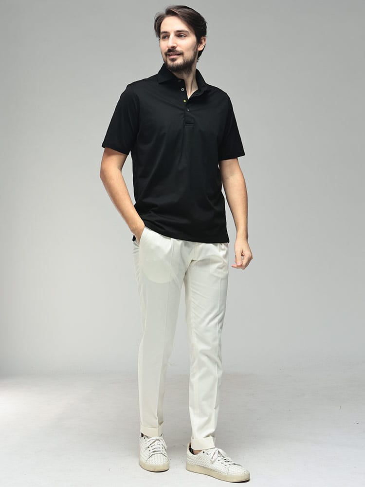イタリア・アドリア海に面したカミチェリアの誇りを感じさせる、GIANNETTO(ジャンネット)の半袖ポロシャツ。最大の特長は、上質なコットンにシルケット加工を施した贅沢なファブリックです。まるでシルクのような上品な光沢感と、滑らかでひんやりとした肌触りが、夏の装いに圧倒的な高級感をプラスします。台襟付きのデザインを採用しているため、ジャケットを羽織った際も襟元が美しく立ち上がり、クールビズやビジネスカジュアルでも「清潔感のある大人」を演出。太陽のアイコンが象徴する南イタリアらしい軽快さと、無駄を削ぎ落としたミニマルなルックスは、デニムからスラックスまで着る人を選びません。夏の定番アイテムだからこそ、質で差をつけたい大人のための逸品です。