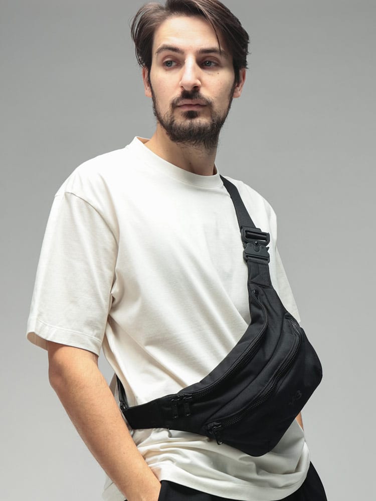 スポーティーな軽快さとモードな品格を兼ね備えた、Y-3のファニーバッグです。体にフィットするスリムなフォルムは、ウエストポーチとしてはもちろん、斜め掛けのスタイルでも都会的で洗練された印象を与えます。必需品をコンパクトにまとめられる機能的な設計で、デイリーユースから旅先のアクティブなシーンまで幅広く活躍。ミニマルなデザインの中にブランドのアイデンティティが息づく、大人のカジュアルを格上げする一品です。