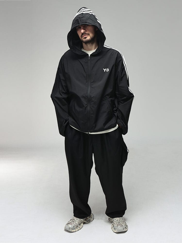 アディダスとヨウジヤマモトの美学が融合した、Y-3(ワイスリー)のナイロンフルジップパーカー。最大の魅力は、スポーティーなナイロン素材をモードな解釈で昇華させた洗練美です。軽量かつ耐久性に優れたナイロン100%のボディに、アイコニックなスリーストライプスを配し、ストリートとラグジュアリーの境界を越えた一着に仕上げました。ゆとりを持たせた現代的なシルエットは、羽織るだけで都会的なスポーツミックススタイルを完成させます。利便性の高いダブルジップ仕様により、シルエットのニュアンス調整も自由自在。アクティブなシーンからタウンユースまで、季節の変わり目のメインアウターとして活躍します。機能性と芸術性を高次元で両立させた、まさにY-3の真骨頂といえる一着です。
