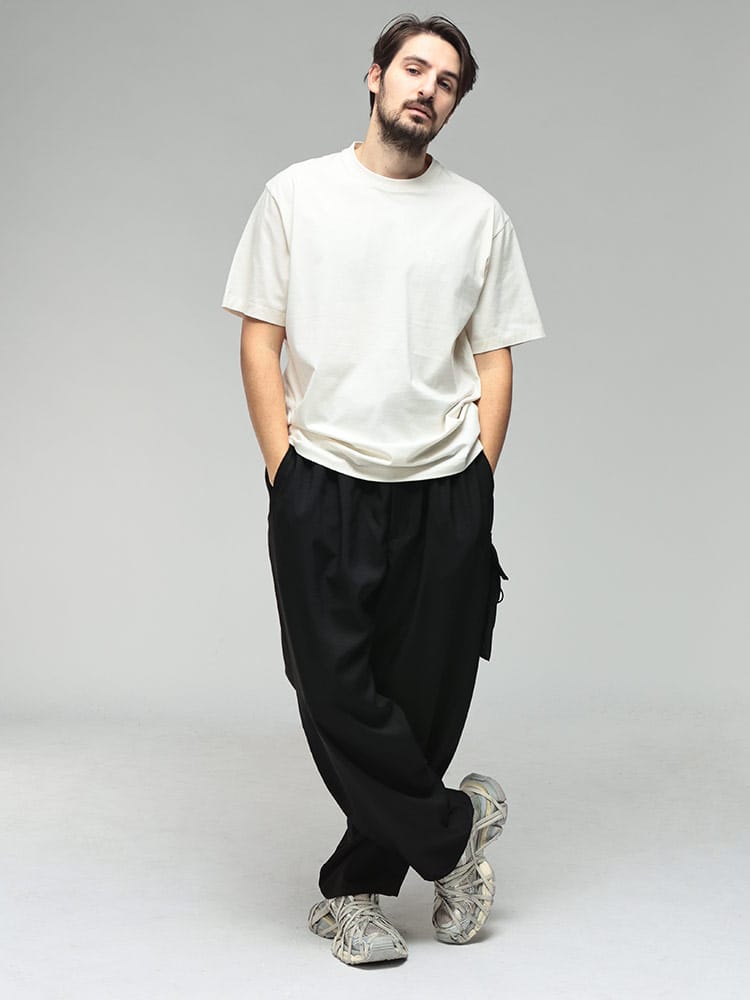 ミニマリズムの極致を体現する、Y-3(ワイスリー)の胸ロゴ・クルーネック半袖Tシャツ。最大の魅力は、一切の無駄を削ぎ落としたクリーンなルックスに、アイコニックなブランドロゴを控えめに配した洗練のデザインです。ヨウジヤマモトの「黒」の哲学とアディダスの機能性が融合し、シンプルながらも圧倒的なモード感を演出。ボディには、しなやかで上質なプレミアムコットン100%を採用。シルクのような滑らかな肌触りと、型崩れしにくいタフな質感を両立しています。首元のリブにポリウレタンを混紡することで、高いフィット感と耐久性を実現。一枚での着用はもちろん、ジャケットのインナーとしてもスタイリッシュに決まる、大人のための究極のベーシックアイテムです。