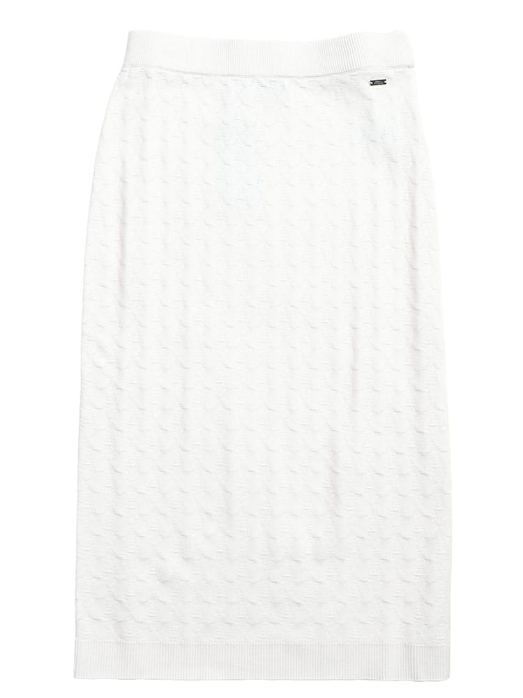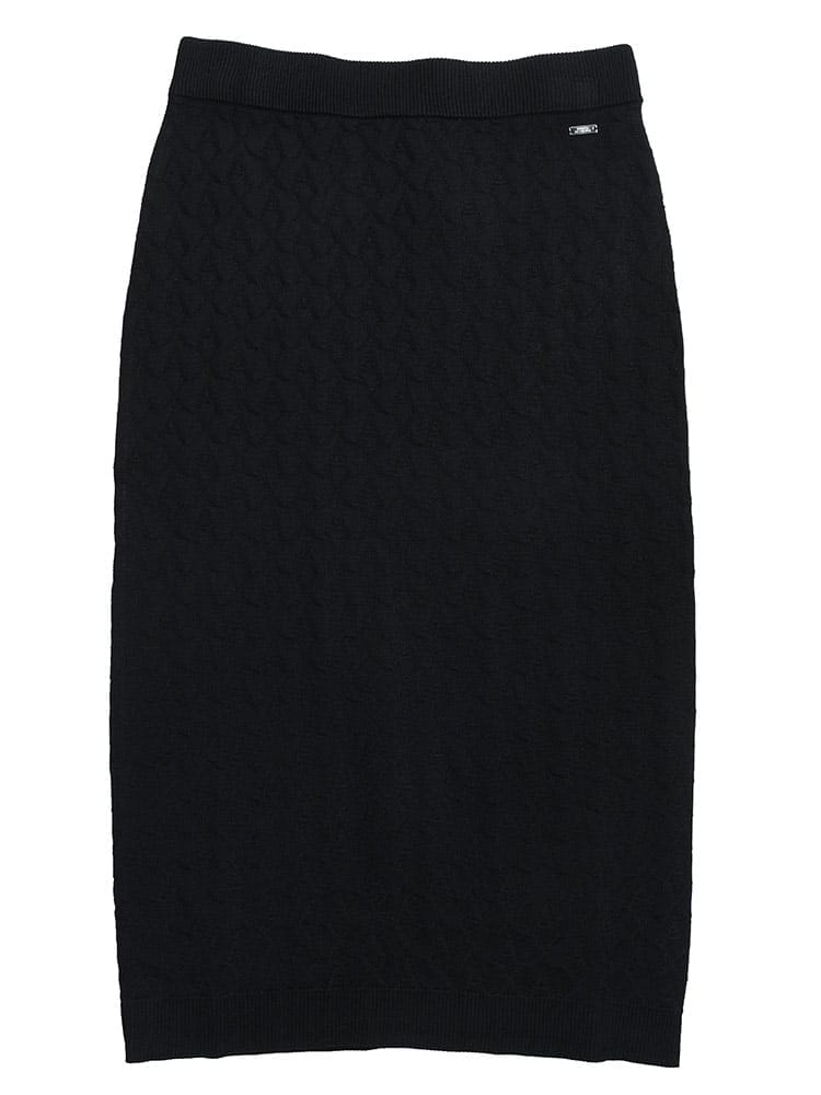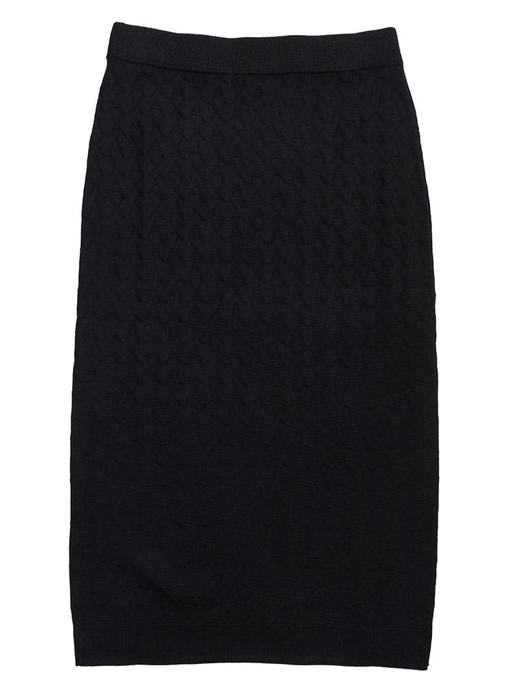 アルマーニ エクスチェンジらしい、都会的でエッジの効いたデザインが目を惹くニットスカートです。精巧なジャガード織りで表現された独自のパターンが、立体感のある表情と洗練されたムードを演出します。ニット特有のしなやかなフィット感が女性らしいシルエットを美しく描き出し、快適な穿き心地を両立。単品使いはもちろん、セットアップでの着こなしも可能で、日常のスタイルを華やかにクラスアップしてくれる一着です。