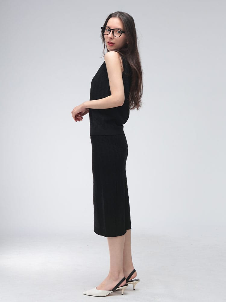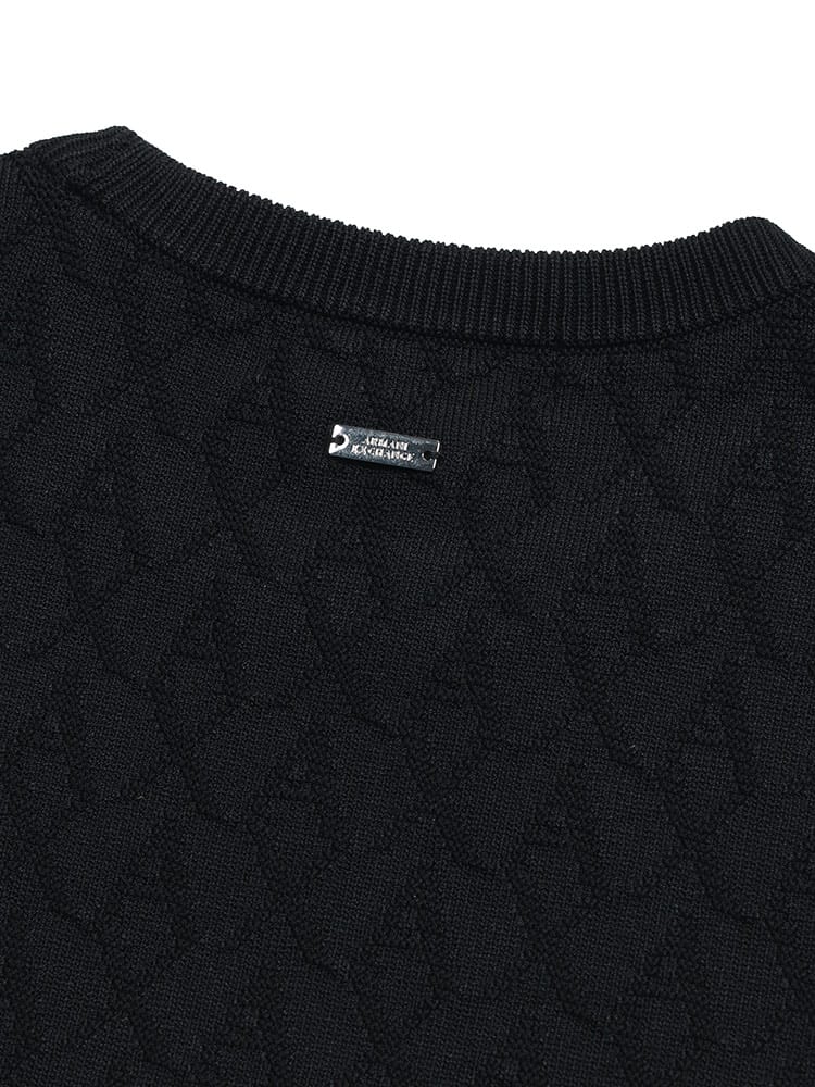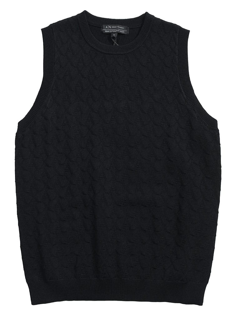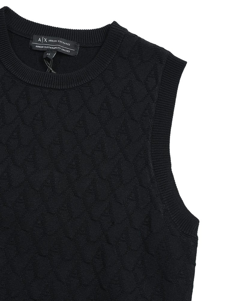 アルマーニ エクスチェンジの個性が光る、ジャガード織りのノースリーブニットベストです。精巧な編み地で表現されたブランドロゴやパターンが、都会的で奥行きのある表情を演出。適度なフィット感とノースリーブの軽快なシルエットが、女性らしく洗練された印象を与えます。一枚でトップスとして着こなすのはもちろん、シャツとのレイヤードも楽しめる万能な一着。日常の装いにモードな遊び心を添えてくれる、主役級のアイテムです。