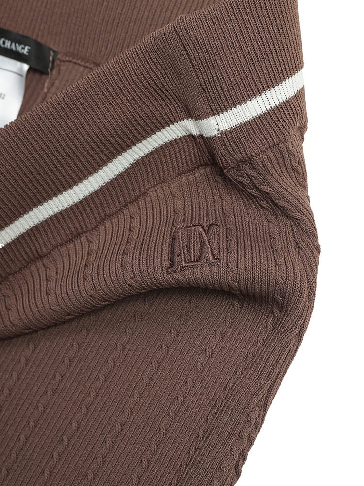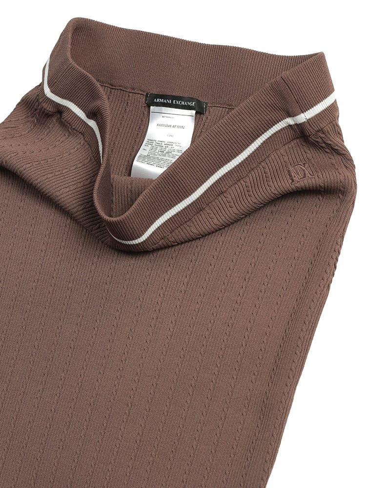 アルマーニ エクスチェンジの洗練された感性が光る、リブ編みのタイトニットスカートです。優れたストレッチ性を備えたニット素材が、ボディラインを美しく引き立てながら、動きやすさと快適なフィット感を両立。リブの縦ラインが脚長効果を生み出し、都会的でシャープなシルエットを演出します。カジュアルなTシャツからエレガントなブラウスまで相性が良く、大人の女性の日常をモードに彩る汎用性の高い一着です。
