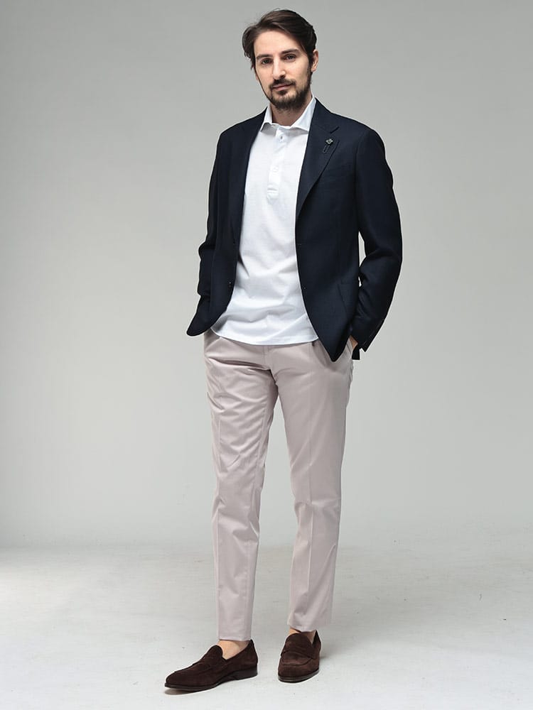 イタリアが誇る名門サルトリアLARDINI(ラルディーニ)から、上品な光沢感が目を惹くコットンサテン生地のシングルジャケットが登場。上質な綿をベースにエラスタンを混紡したストレッチ素材を採用し、ブランドが得意とするシャープで美しいシルエットを維持しながら、身体の動きに寄り添うノンストレスな着心地を実現しました。サテン特有の微光沢がビジネスシーンに華やぎを、休日のジャケパンスタイルには都会的なエレガンスをプラスします。ラペルには象徴的なブートニエールが配され、サイドベンツや額縁仕上げなど、伝統的な仕立ての美しさが光る一着。フォーマルな品格とモダンな機能性を兼ね備え、オンオフを問わず洗練された大人の装いを格上げするマスターピースです。