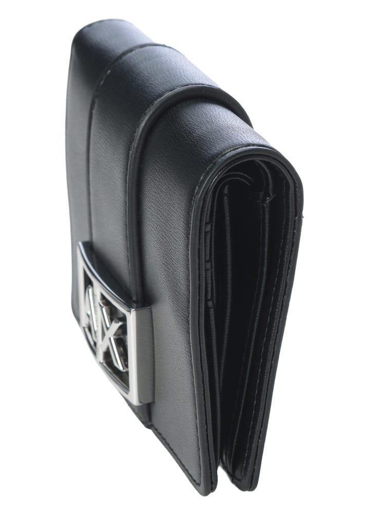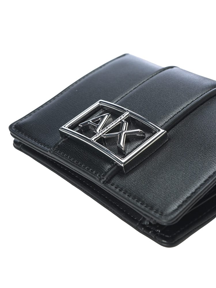 アルマーニ エクスチェンジの洗練された美学が宿る、エレガントな二つ折りウォレットです。フロントに配された上品なロゴプレートが、ミニマルなデザインの中に確かな存在感と高級感を添えています。環境に配慮した高品質な合成皮革を採用し、デイリーユースに適した耐久性と滑らかな質感を実現。コンパクトながらも収納力に優れ、バッグの中でもかさばらずにスマートに持ち運べる、機能性とスタイルを兼ね備えた逸品です。