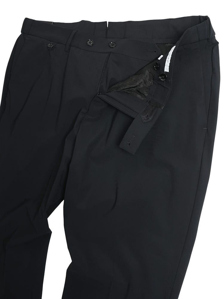 イタリアを代表するパンツブランドが提案する、現代の多忙なライフスタイルに寄り添う「ACTIVE」シリーズのノータックスラックス。最大の特徴は、驚異的な伸縮性を誇る高機能ストレッチナイロンを採用したことによる、ストレスフリーな穿き心地です。スリムで美しいテーパードラインを保ちながら、ウエスト調節ゴム仕様により長時間のデスクワークや移動、ゴルフなどのアクティブなシーンでも常に快適なフィット感を提供します。トラッドなスラックスの気品を纏いつつ、機能的なジップフライや速乾性を備えた生地感がモダンな印象を加速。ビジネスからオフのスポーツスタイルまで、シーンを問わずスマートなシルエットを約束する、大人のためのハイテクな一着です。
