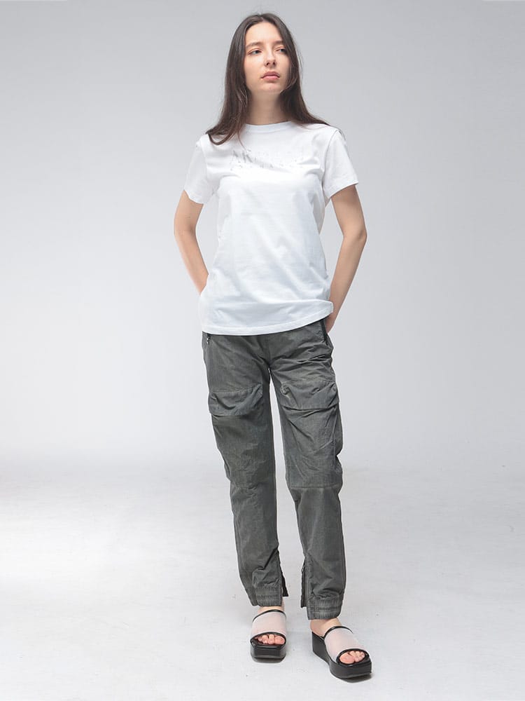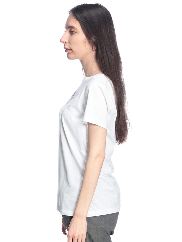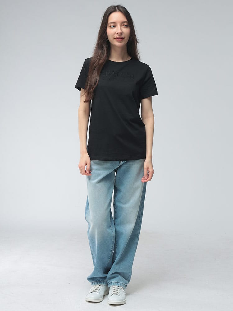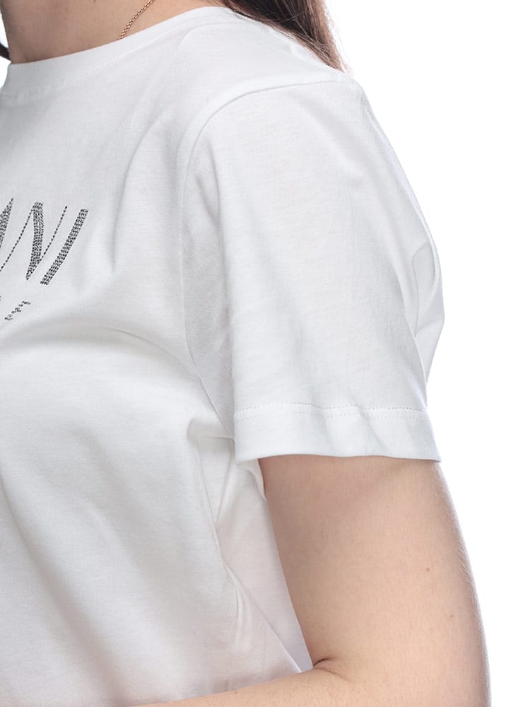 フロントに配されたブランドロゴを繊細なラインストーンで表現し、光の角度によって上品に煌めくリュクスな表情を演出。シンプルなクルーネックのボディが、装飾の輝きをより一層引き立て、カジュアルなカットソーでありながらドレッシーな存在感を放ちます。厳選された柔らかなコットン素材は、肌に優しくフィットし、ストレスフリーな着心地を約束。デニムと合わせたミニマルなスタイルから、ジャケットのインナーとして胸元にアクセントを置くスタイルまで、日常のコーディネートをドラマティックに格上げしてくれる一着です。