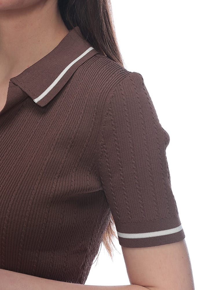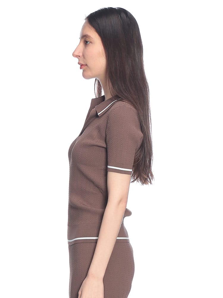 ARMANI EXCHANGE (アルマーニ エクスチェンジ) レディース ポロシャツ 半袖 ロゴ ライン リブ オープンカラー サマーニット AELXW1897AF1352