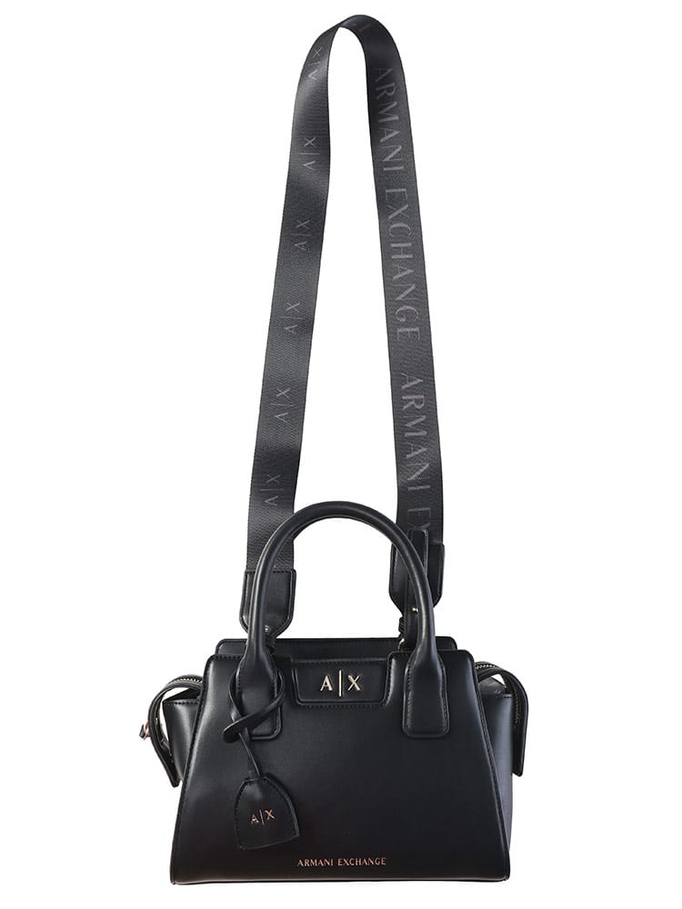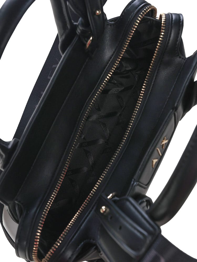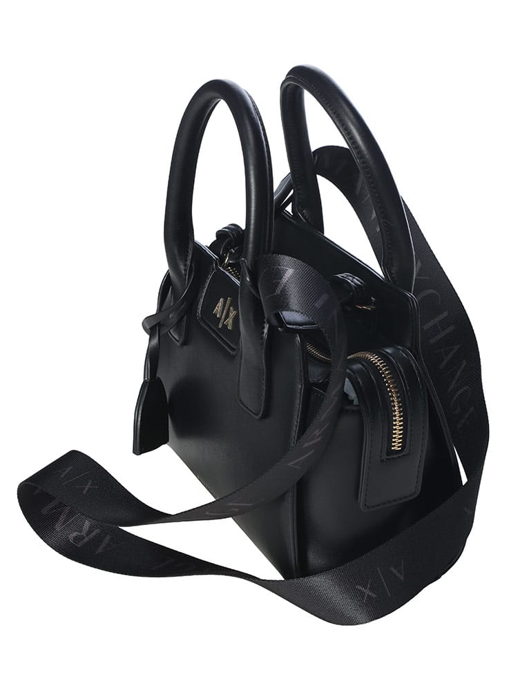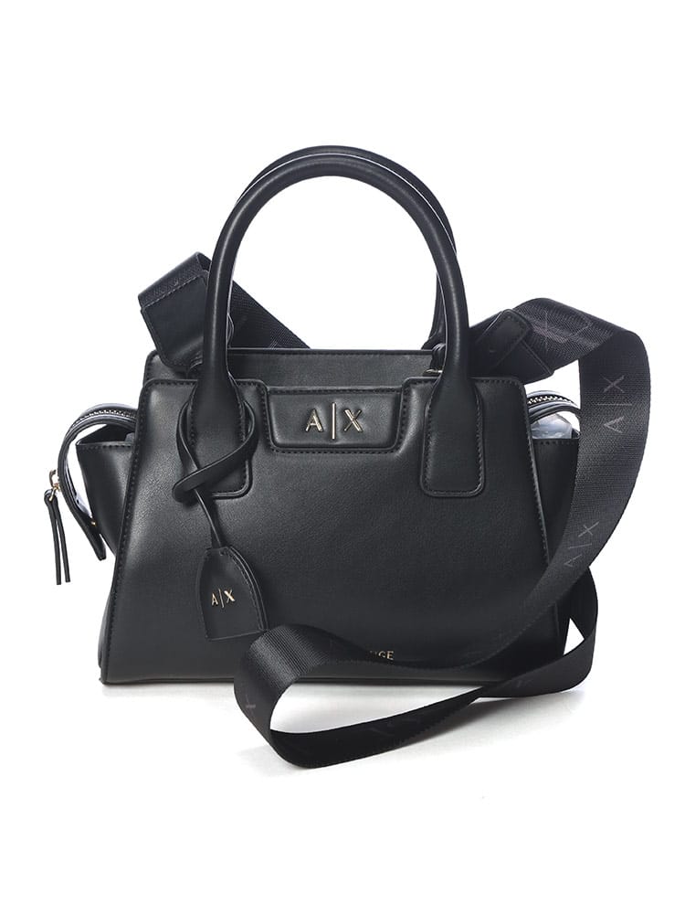 洗練されたトラペゾイド(台形)シルエットに、アイコニックなAXロゴが映えるアルマーニ エクスチェンジのハンドバッグ。コンパクトなサイズ感ながら、都会的なエッジと女性らしいエレガンスを兼ね備えたデザインが魅力です。付属のストラップでショルダーバッグとしても活用できる2WAY仕様で、デイリーから華やかなシーンまで幅広く対応。手にするだけで日常のスタイリングをモダンに引き締めてくれるアイテムです。