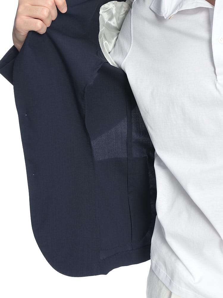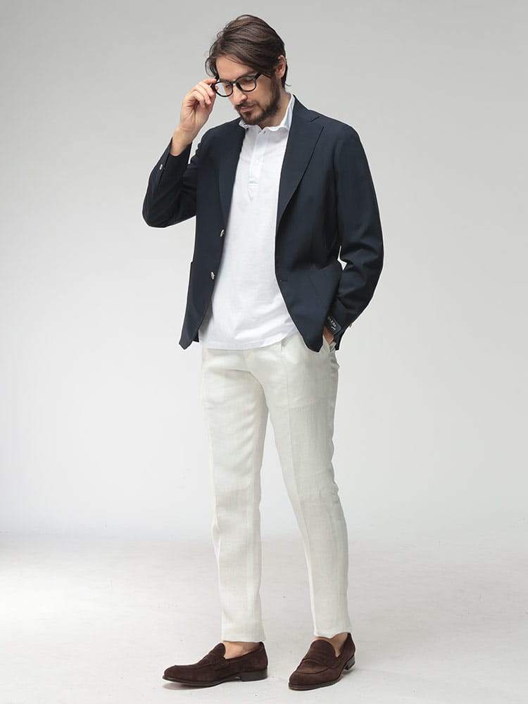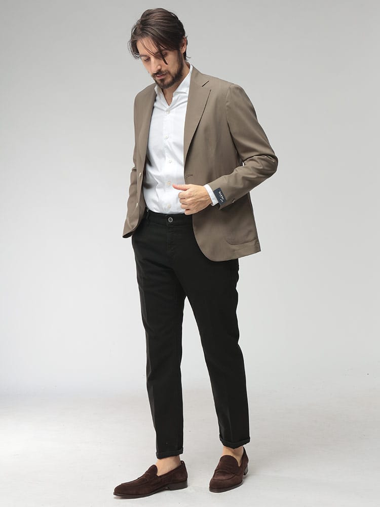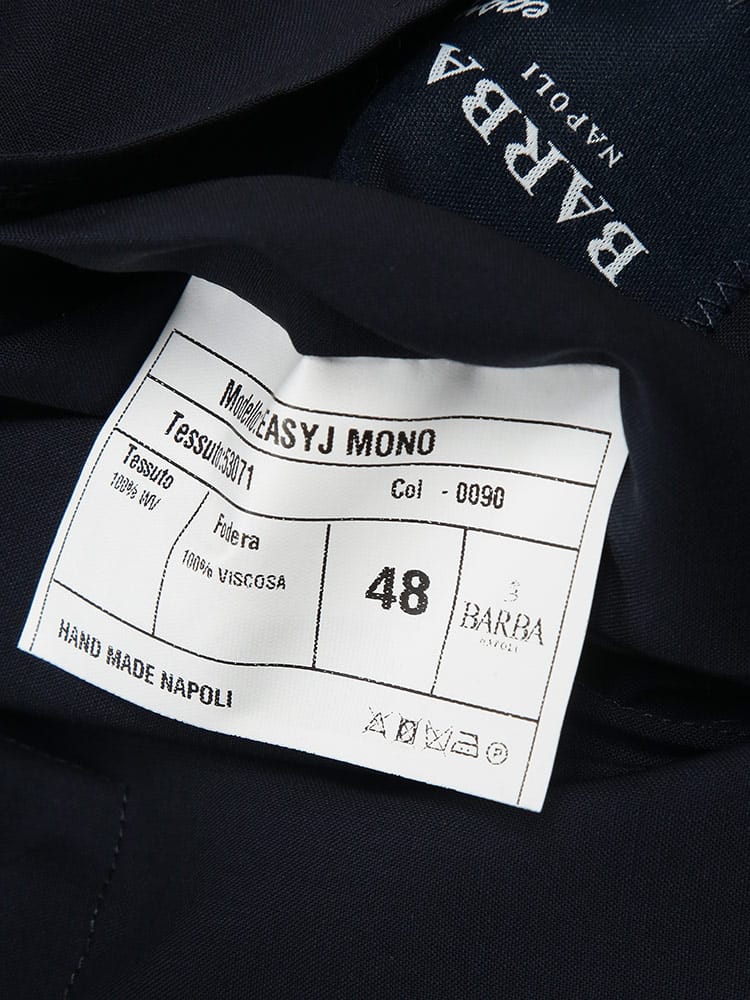 熟練のハンドワークが光る、体に吸い付くような極上のフィッティングが魅力の一着です。ナポリ仕立てらしい柔らかい肩周りと、美しくシェイプされたウエストラインが、着る人のシルエットを端正に引き立てます。軽快な着心地でありながら、漂う品格はビジネスの重要な局面から華やかな休日まで幅広く対応可能です。細部まで注がれた職人のこだわりを肌で感じられる、日常を彩る特別な存在となるでしょう。