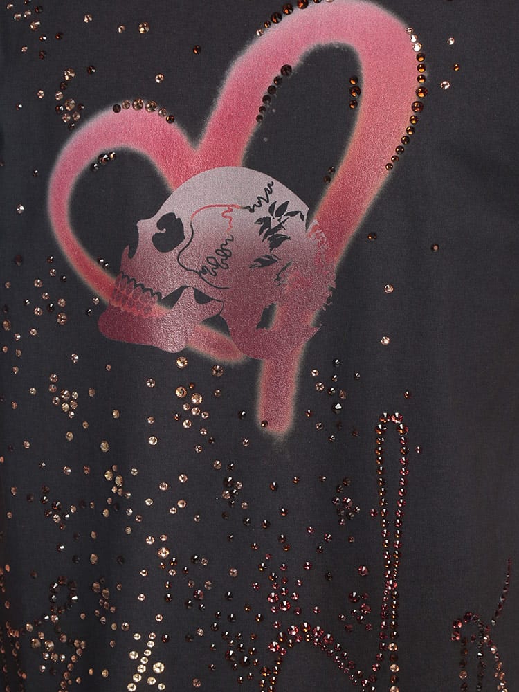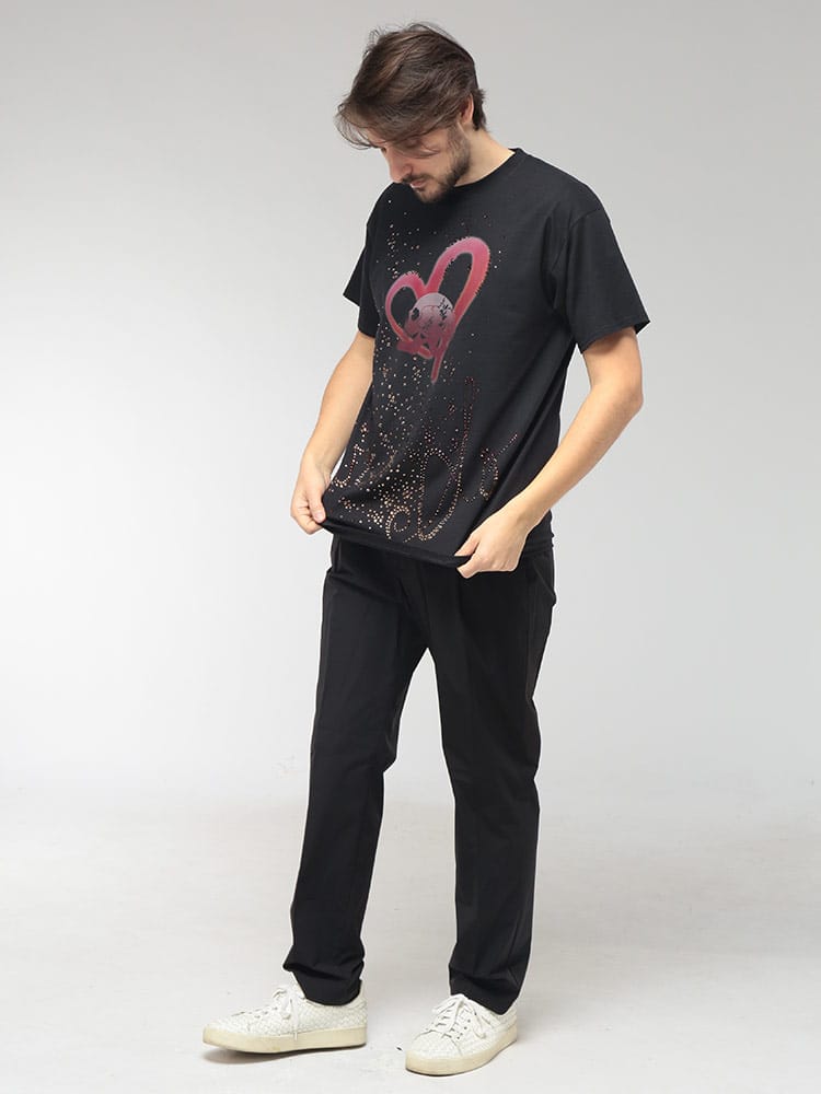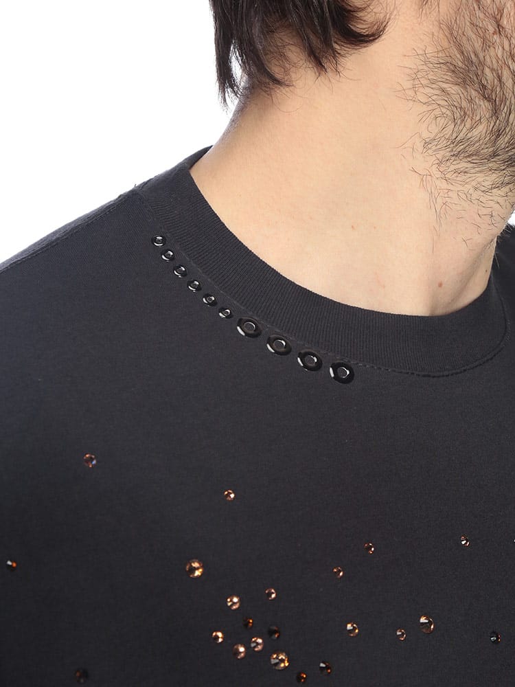 圧倒的な個性を放つ至高の半袖Tシャツが登場。ブランドの象徴である「ハートスカル」を、贅沢なスワロフスキーで装飾した唯一無二のデザインが、夏の装いにラグジュアリーな輝きとロックなエッセンスを添えます。厳選された上質なコットン素材を採用し、シルクのような滑らかな肌当たりと、汗ばむ季節でも快適な通気性を両立。計算し尽くされたスリムなシルエットが身体のラインを美しく引き立て、一枚での着用はもちろんジャケットのインナーとしても抜群の存在感を放ちます。クラフトマンシップと独創的な感性が融合した、大人の遊び心を刺激する究極のカットソーです。